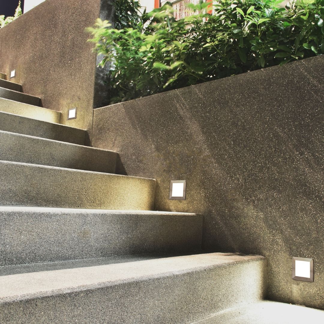 Zápustné venkovní svítidlo s integrovanou 3,5W LED 165 lumenů a barva světla je 4000K. Svítidlo má rozměr 13,5x13,5x5,5cm.