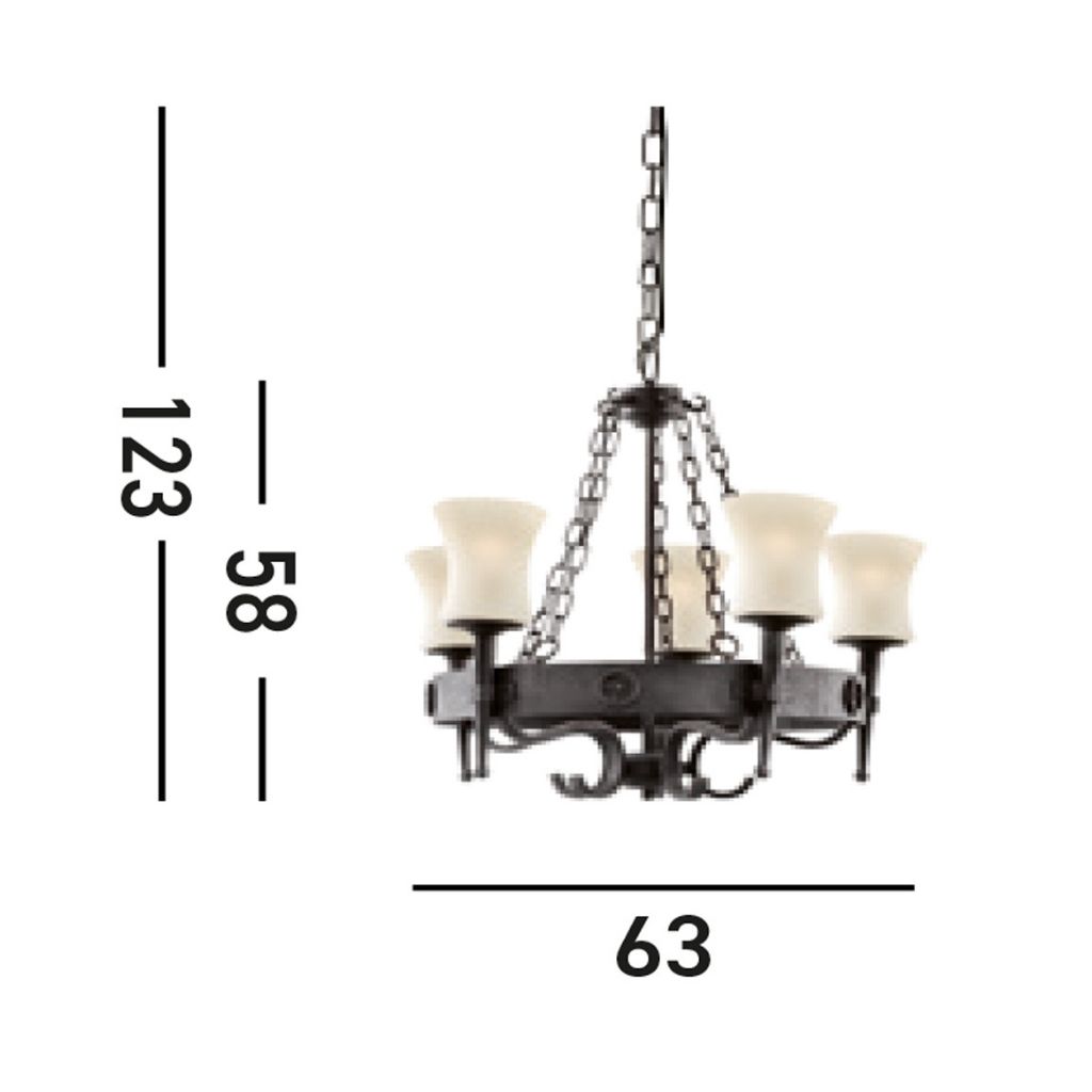 Svítidlo má maximální příkon 5 x 60W. Světelný zdroj je E27. Není součást balení.