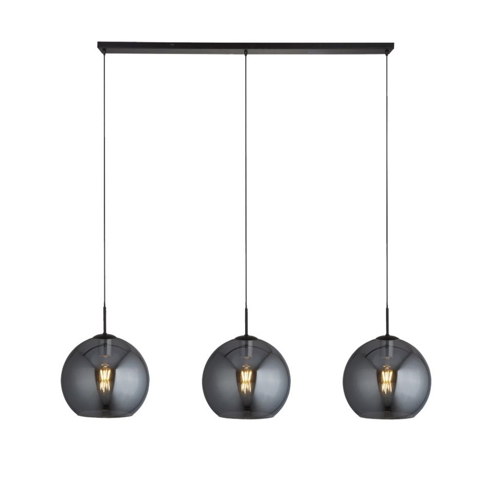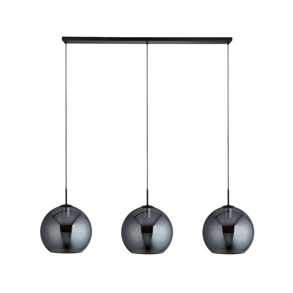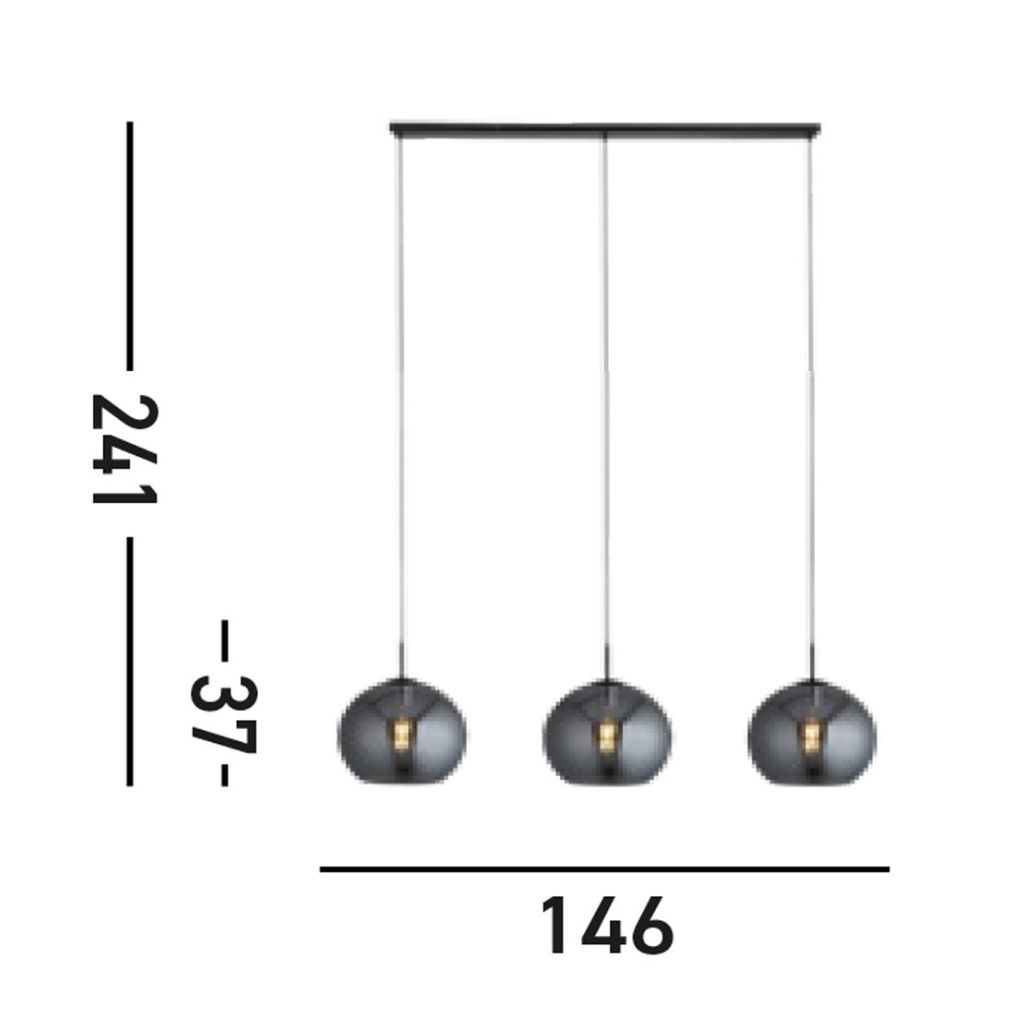Searchlight závěsné svítidlo barva černá, povrchová úprava matný práškový lak, použitý materiál je měkká ocel a sklo. Rozměry v cm: celková výška: 241, výška: 37, šířka: 30, délka: 146, projekce: 0. Světelný zdroj objímka E27, potřeba žárovek 3, světelný zdroj není v balení, doporučený typ žárovky od výrobce je klasická baňka na max. 60W.