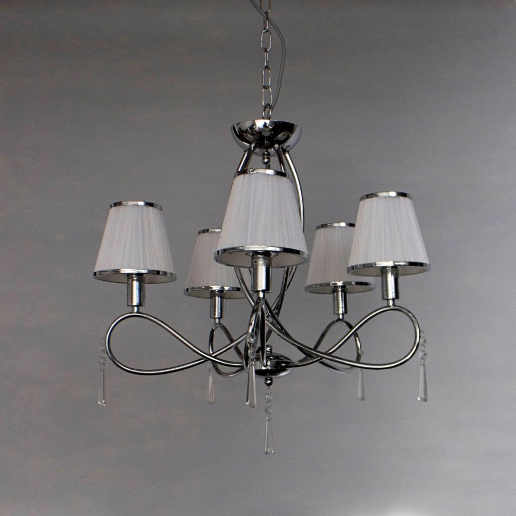 SIMPLICITY - 5x zdroj, závěsné svítidlo, chrom, čiré sklo, bílé šňůrky stínítka