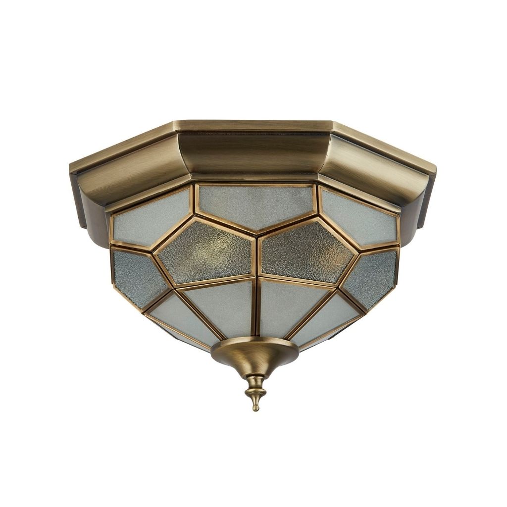 Svítidlo od výrobce Searchlight. Kov je v úpravě mosaz antik a sklo je zabrušované s mraženým nebo secesním dekorem. Patice E14 na max. 2x60W. Výška je 18cm a průměr je 29cm.