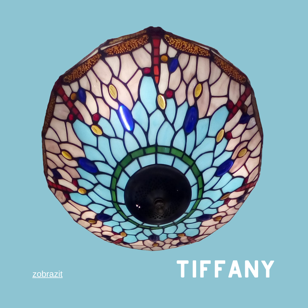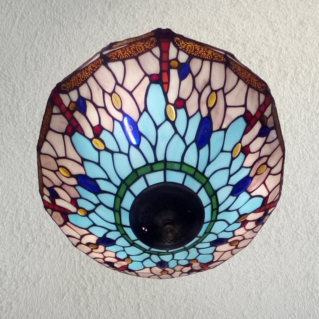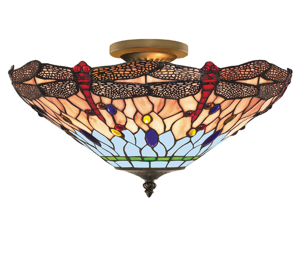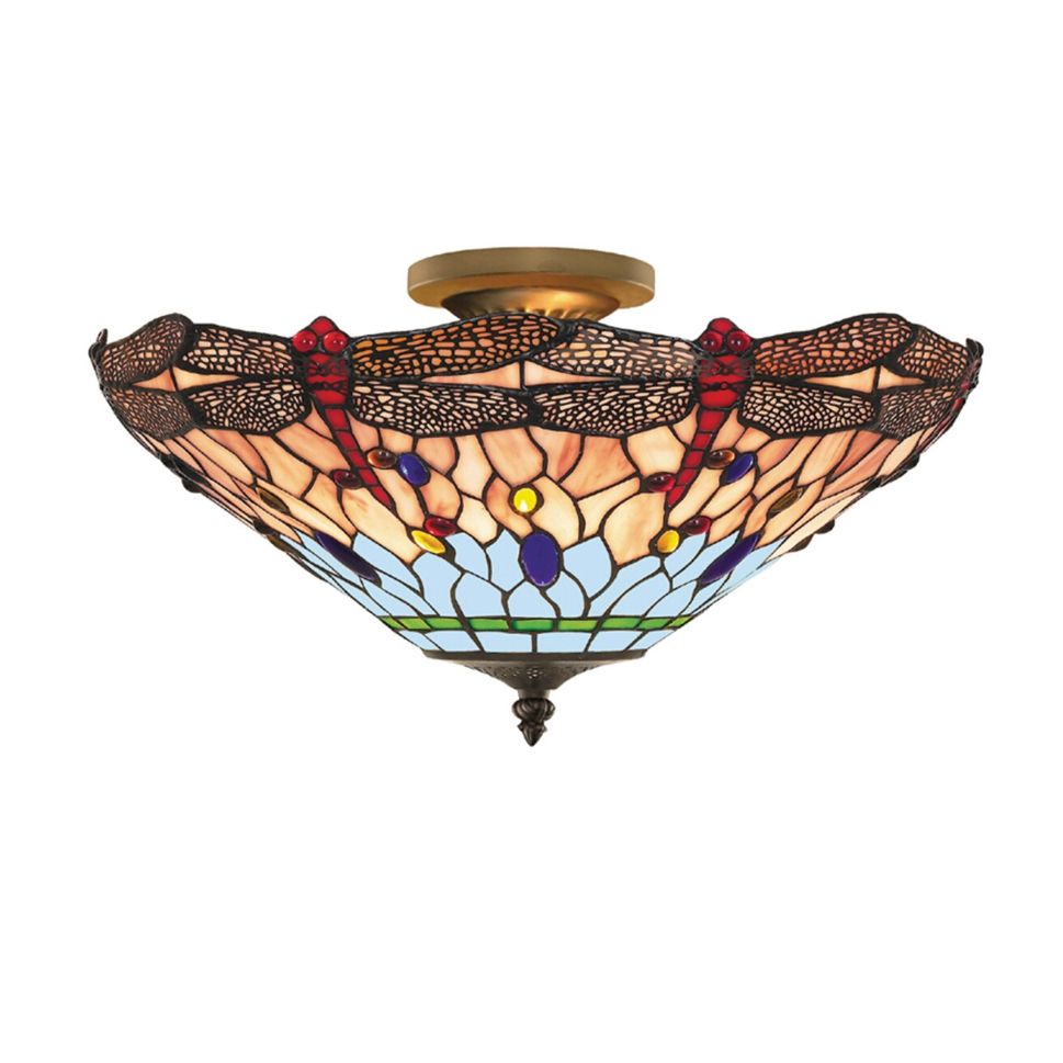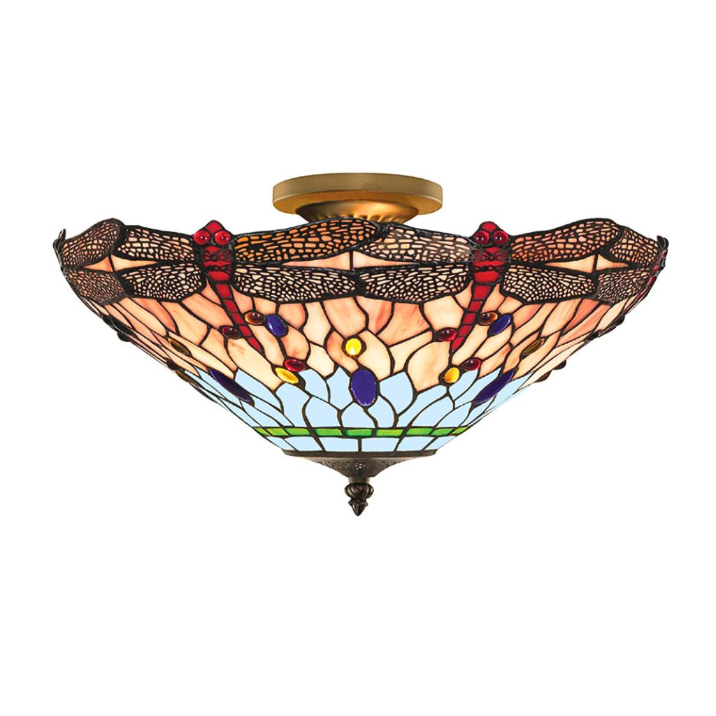 DRAGONFLY - 1x zdroj, S/přisazené svítidlo na strop, antická mosaz, TIFFANY sklo technika