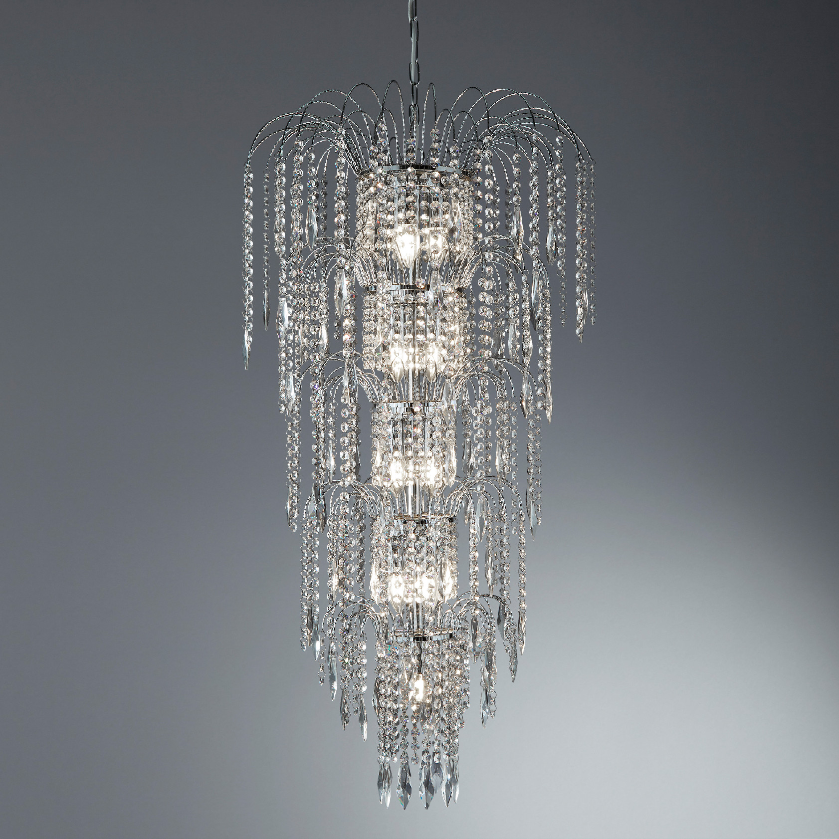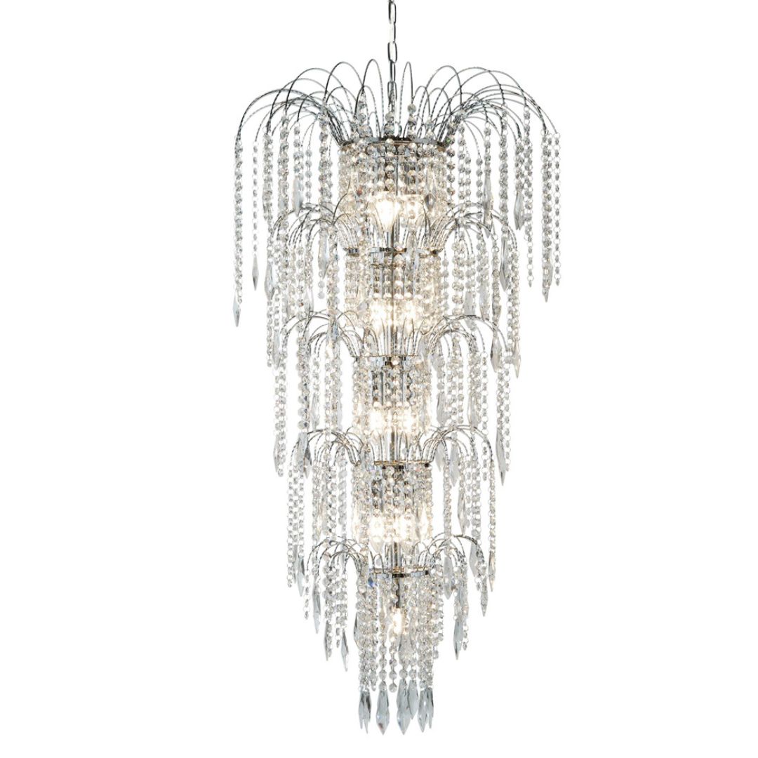 WATERFALL - 13x zdroj, patrový lustr, chrom, čirý křišťál