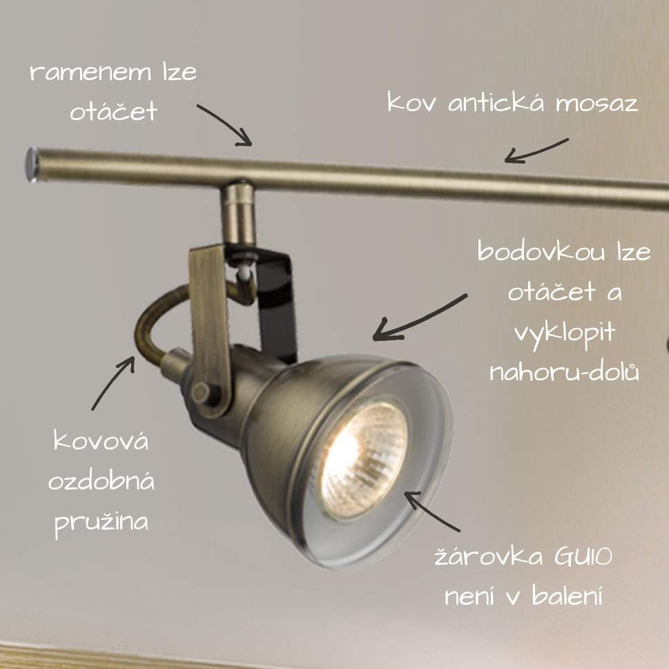 FOCUS - 4x zdroj, bodovky na liště, antická mosaz