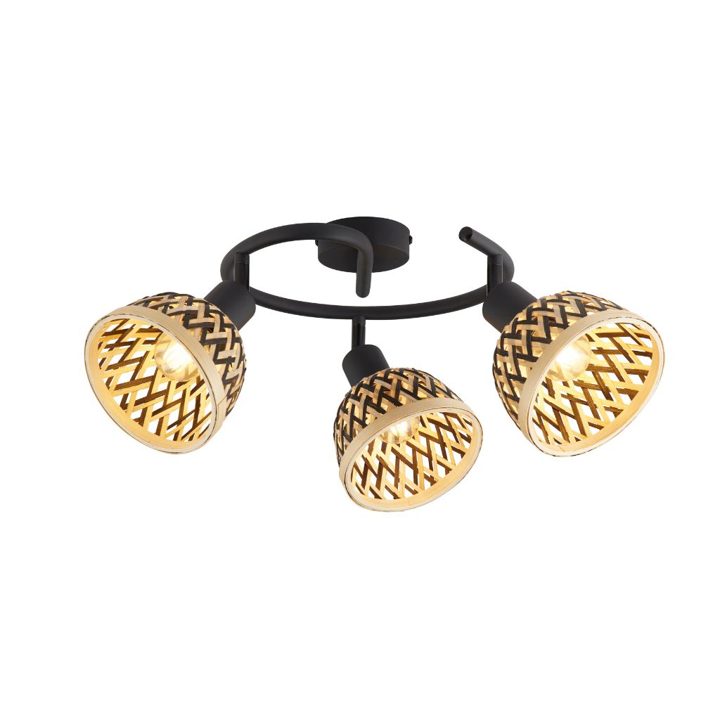 Searchlight bodovkové svítidlo barva černá a hnědá, povrchová úprava barvení texturování, použitý materiál je bambus a měkká ocel. Rozměry v cm: celková výška: 22, výška: 17, šířka: 46, délka: 46, projekce: 0. Světelný zdroj objímka E14, potřeba žárovek 3, světelný zdroj není v balení, doporučený typ žárovky od výrobce je golf kulička na max. 40W.