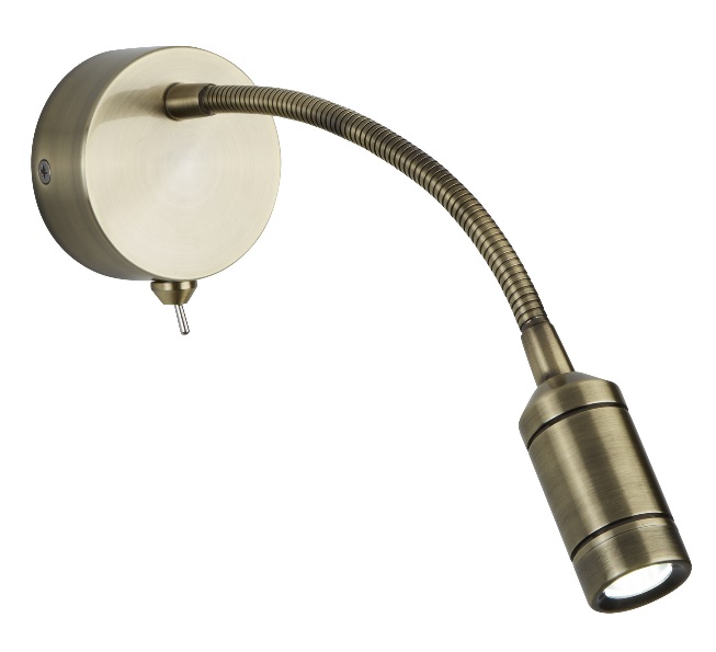 WALL LIGHT LED - flexibilní rameno, antická mosaz