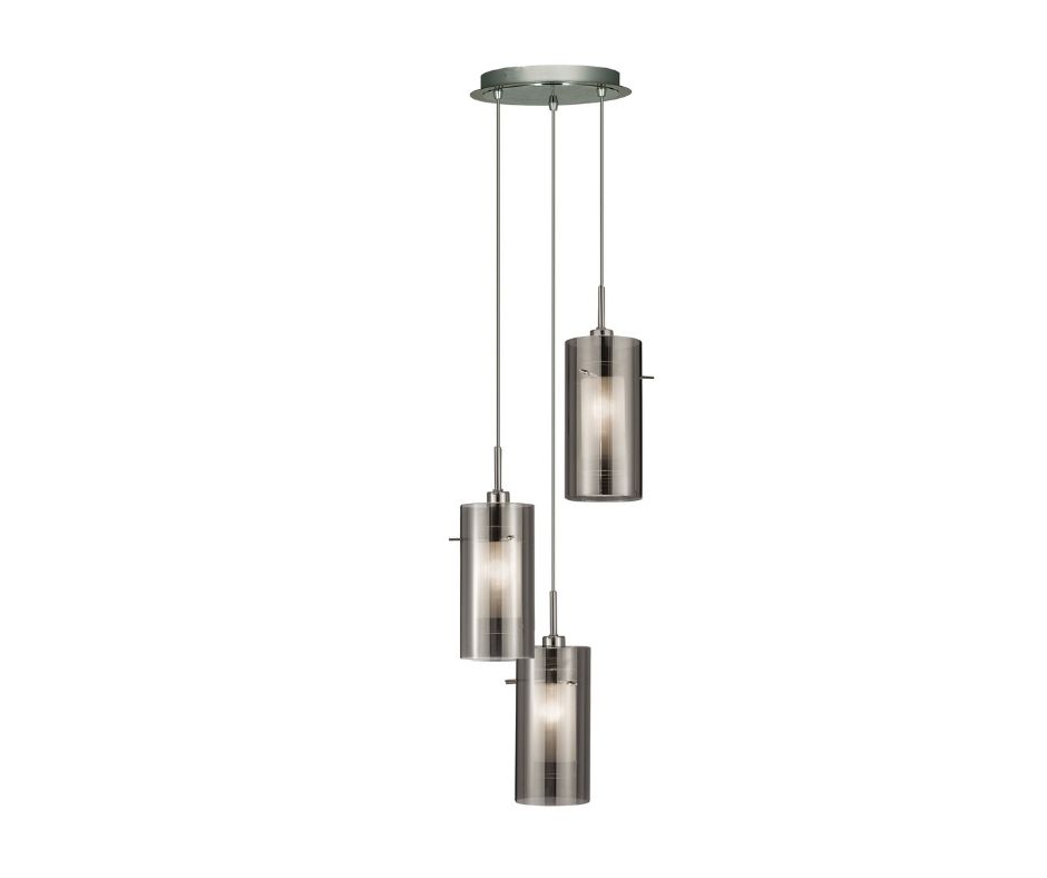 DUO 2 - 3x zdroj, závěsné svítidlo, kouřové vnější/mražené vnitřní sklo stínidla