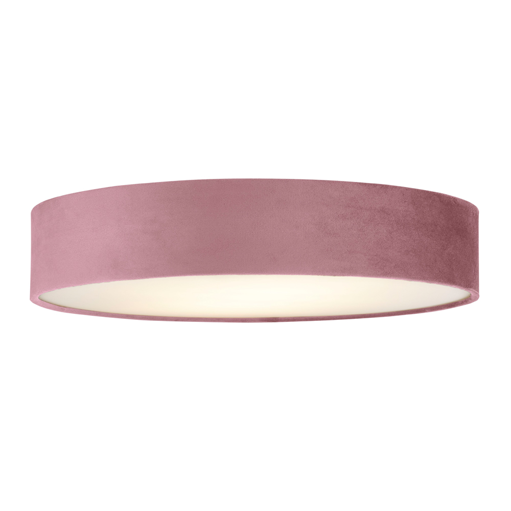 Searchlight stropní svítidlo barva růžová bílá a mražená, povrchová úprava barvení, použitý materiál je měkká ocel, samet a plast. Rozměry v cm: celková výška: 10, výška: 10, šířka: 50, délka: 50, projekce: 0. Světelný zdroj objímka E27, potřeba žárovek 3, světelný zdroj není v balení, doporučený typ žárovky od výrobce je klasická baňka na max. 60W.