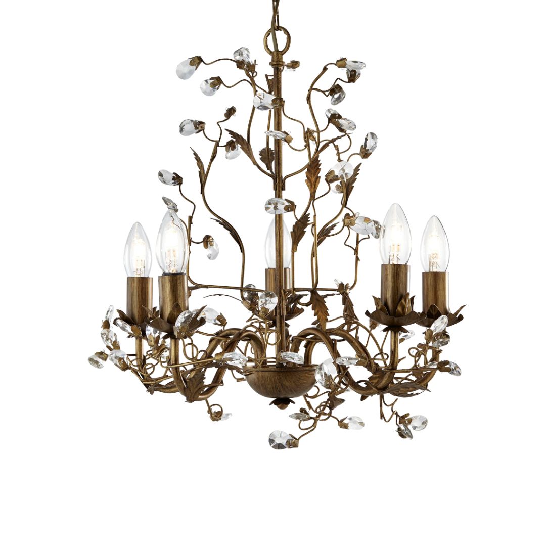 ALMANDITE - 5x zdroj, závěsné svítidlo, hnědo zlatý povrch a čiré křišťálové ozdoby