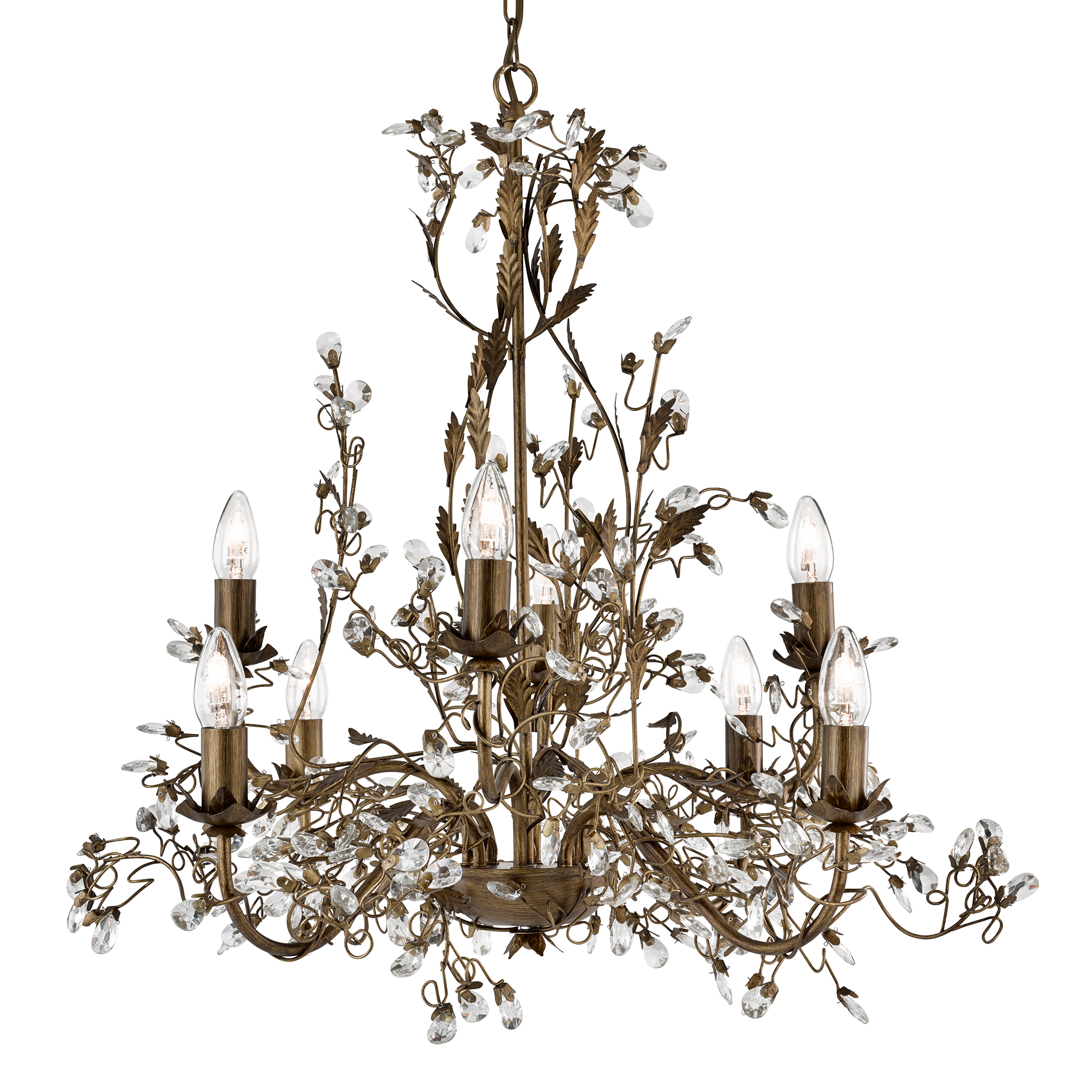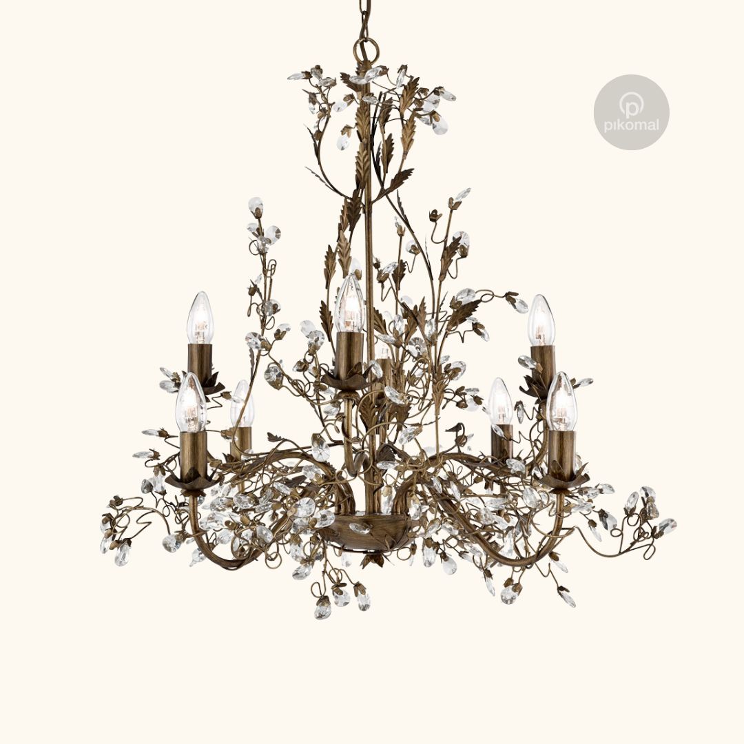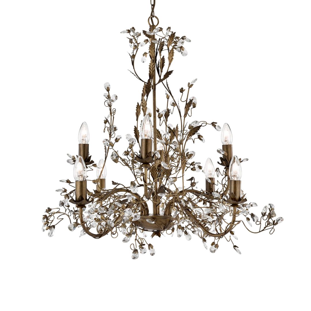 ALMANDITE - 8x zdroj, závěsné svítidlo, hnědo zlatý povrch a čiré křišťálové ozdoby