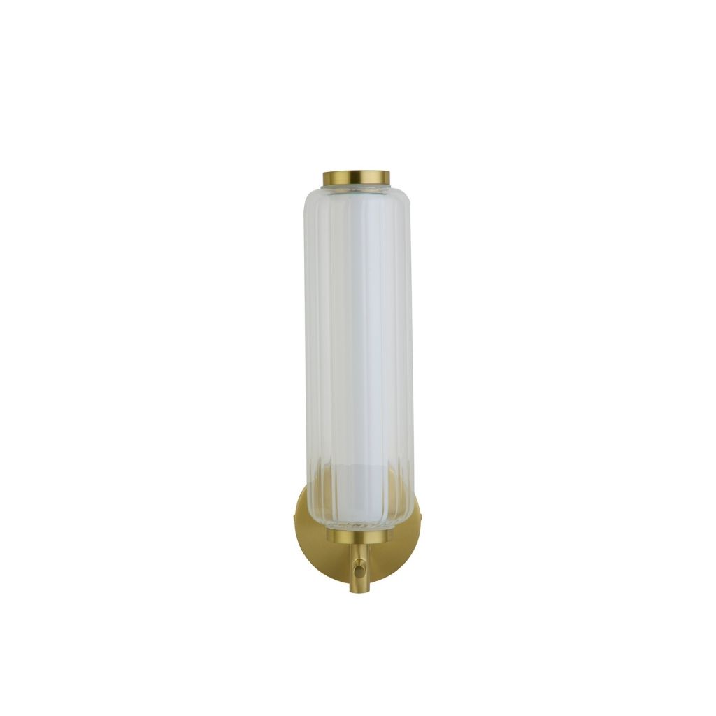 Searchlight nástěnné svítidlo barva mosaz a čirá, povrchová úprava pokovení matované, použitý materiál je sklo a kov. Rozměry v cm: celková výška: 32, výška: 32, šířka: 10, délka: 0, projekce: 14. Světelný zdroj LED: Ano - integrovaný zdroj.