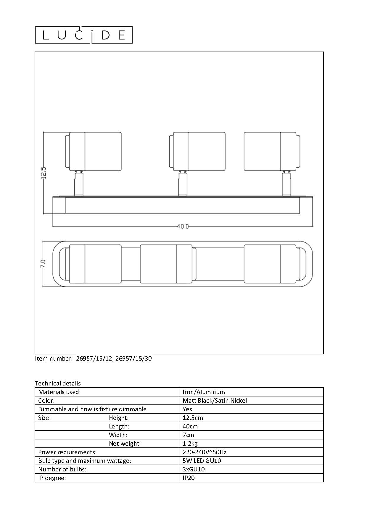 | Počet světelných zdrojů | 3 |