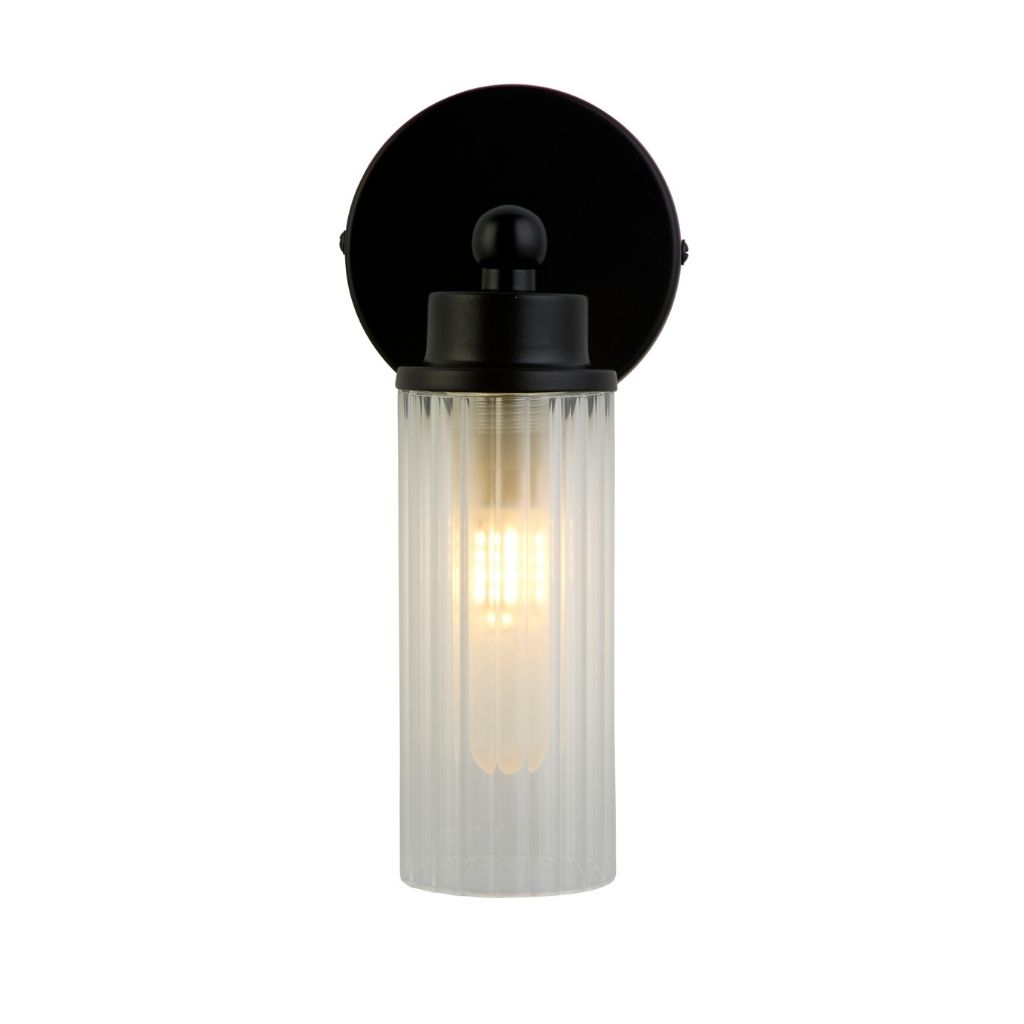 Searchlight nástěnné svítidlo barva černá a čirá žebrovaná, povrchová úprava barvení matné, použitý materiál je sklo a kov. Rozměry v cm: celková výška: 22, výška: 22, šířka: 10, délka: 0, projekce: 10. Světelný zdroj objímka G9, potřeba žárovek 1, světelný zdroj není v balení, doporučený typ žárovky od výrobce je G9 na max. 7W.