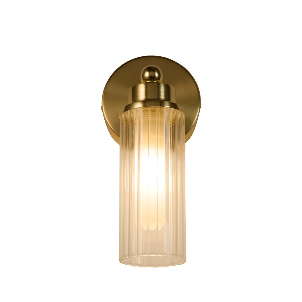 Searchlight nástěnné svítidlo barva matná mosaz a čirá žebrovaná, povrchová úprava pokovení matované, použitý materiál je sklo a kov. Rozměry v cm: celková výška: 22, výška: 22, šířka: 10, délka: 0, projekce: 12. Světelný zdroj objímka G9, potřeba žárovek 1, světelný zdroj není v balení, doporučený typ žárovky od výrobce je G9 na max. 7W.