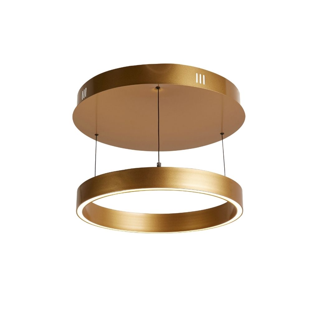 Searchlight závěsné svítidlo barva zlatá, povrchová úprava barvení matné, použitý materiál je měkká ocel a hliník. Rozměry v cm: celková výška: 190, výška: 12,5, šířka: 44, délka: 44, projekce: 0. Světelný zdroj LED: Ano - integrovaný zdroj.