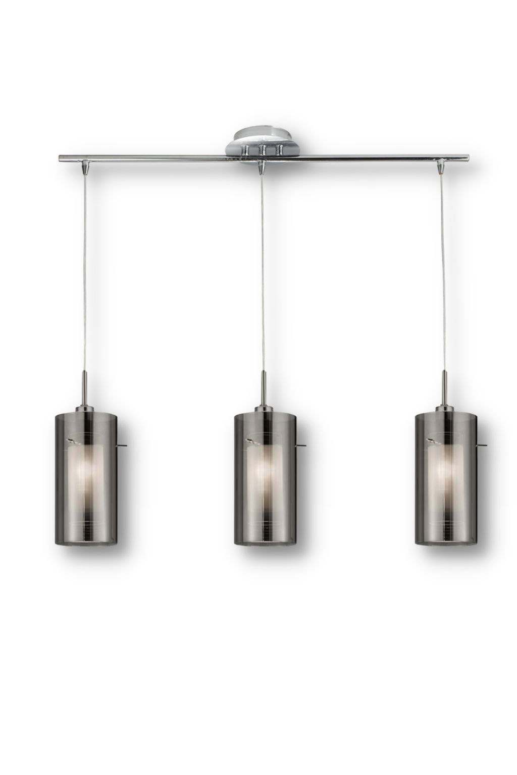 DUO 2 - 3x zdroj, závěsné svítidlo nad jídelní stůl, kouřové vnější/mražené vnitřní sklo stínidla