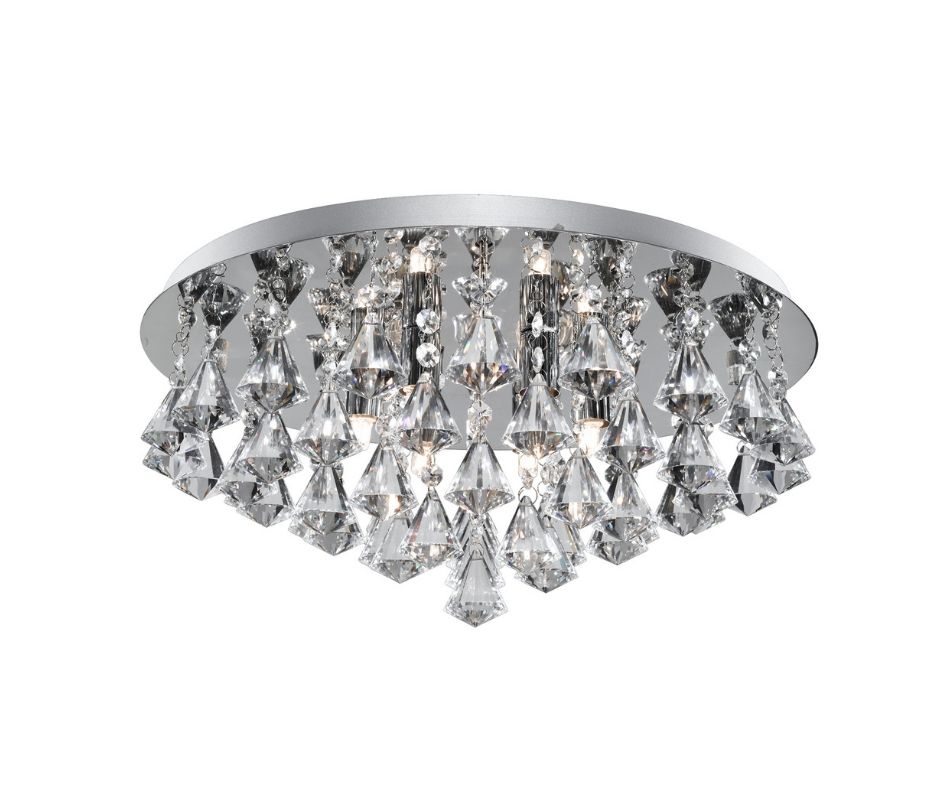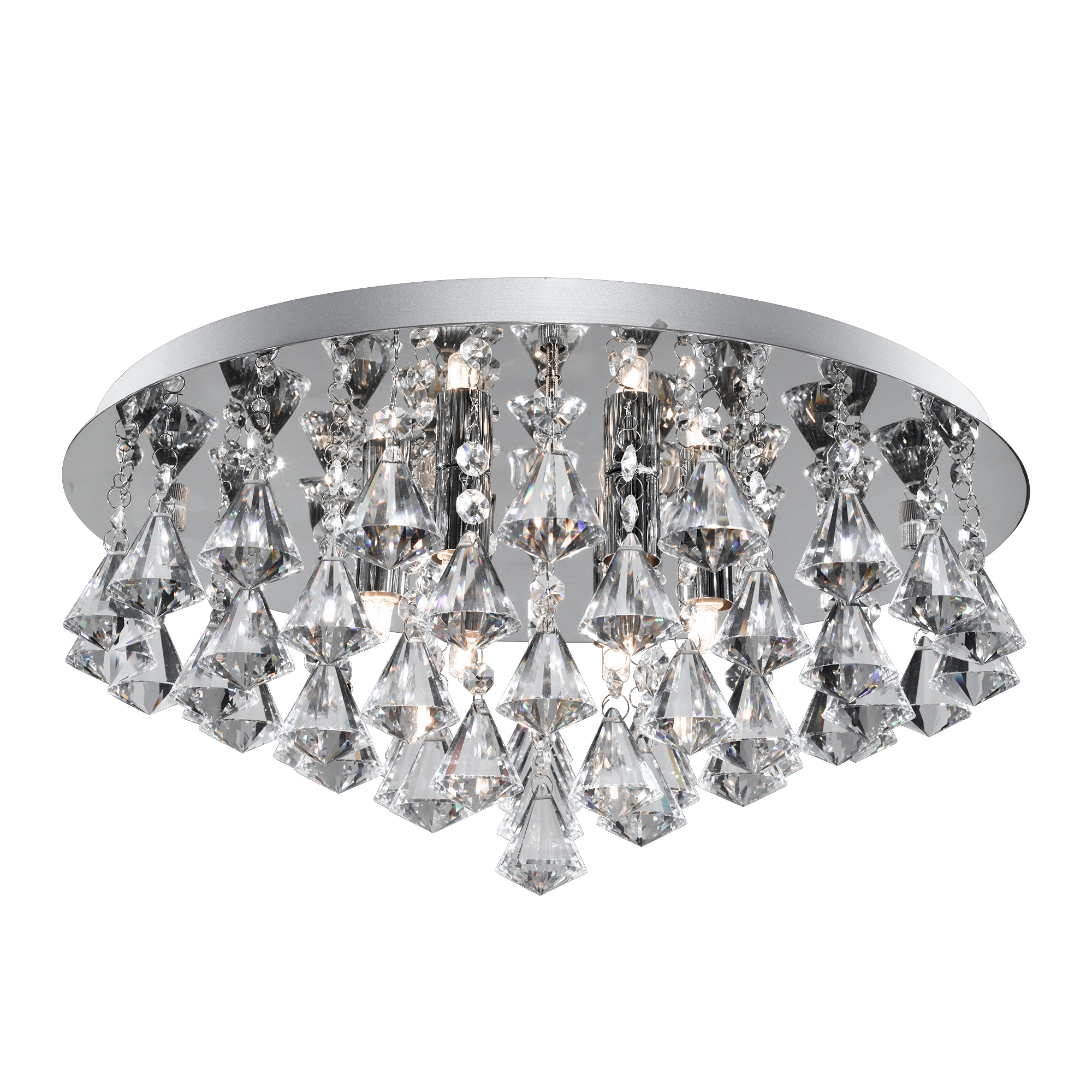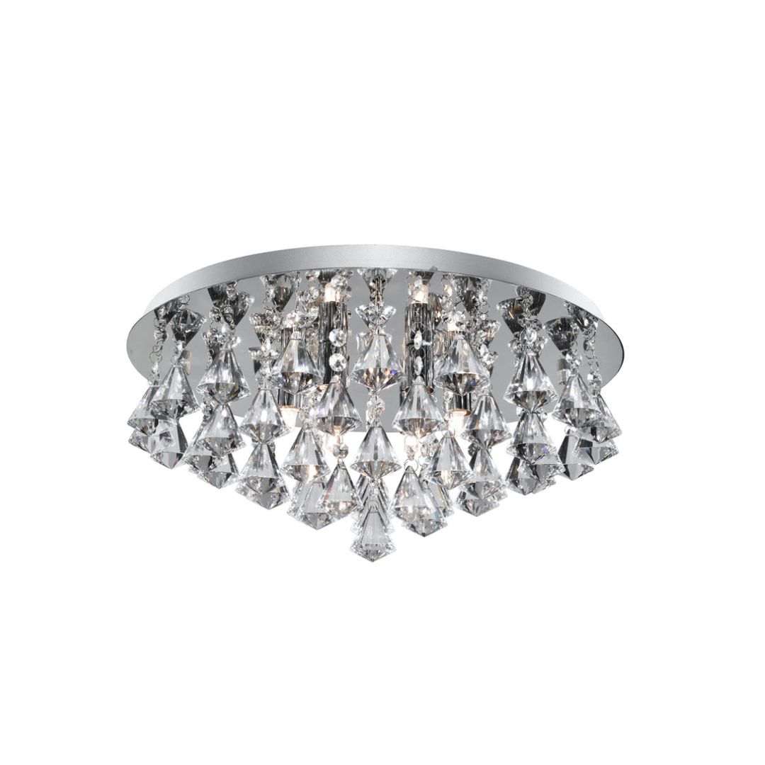 HANNA 6x zdroj, přisazené svítidlo na strop, chrom a čiré křišťálové ověsy ve tvaru pyramidek
