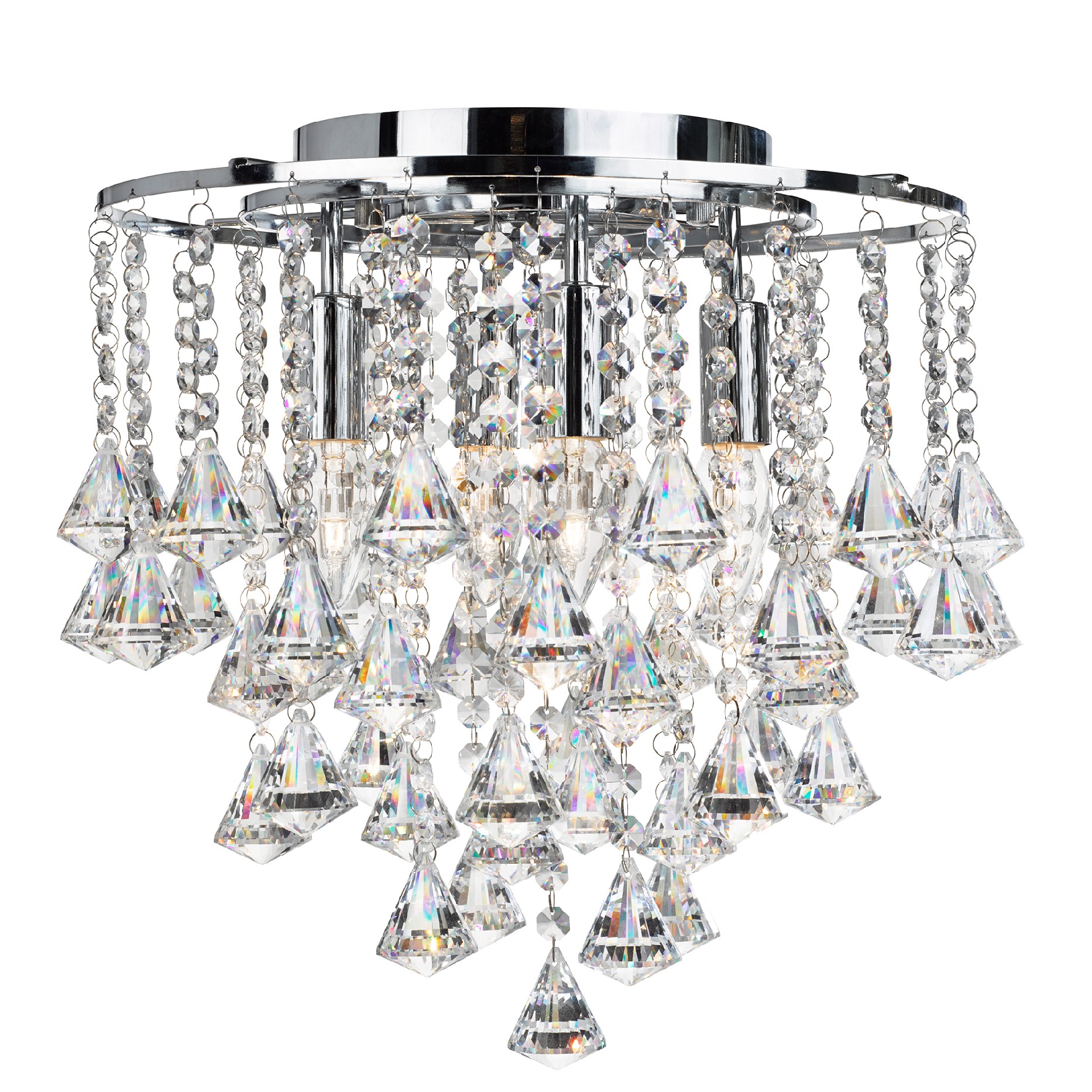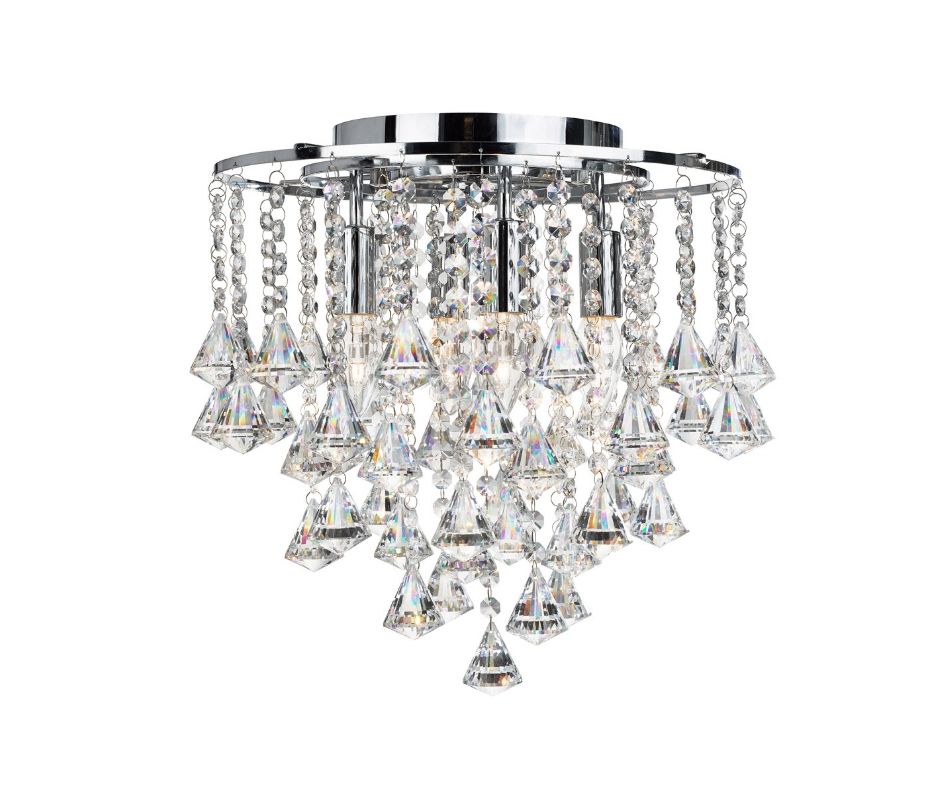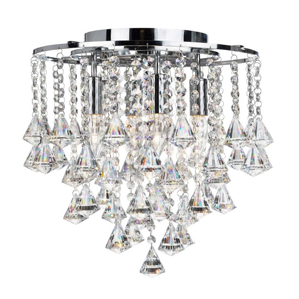 DORCHESTER - 4x zdroj, přisazené svítidlo na strop, chrom a čiré křišťálové ověsy ve tvaru pyramidek