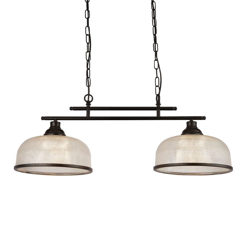 Searchlight závěsné svítidlo barva černá a čirá, povrchová úprava matný práškový lak, použitý materiál je měkká ocel a sklo. Rozměry v cm: celková výška: 120, výška: 27, šířka: 27, délka: 75, projekce: 0. Světelný zdroj objímka E27, potřeba žárovek 2, světelný zdroj není v balení, doporučený typ žárovky od výrobce je klasická baňka na max. 60W.