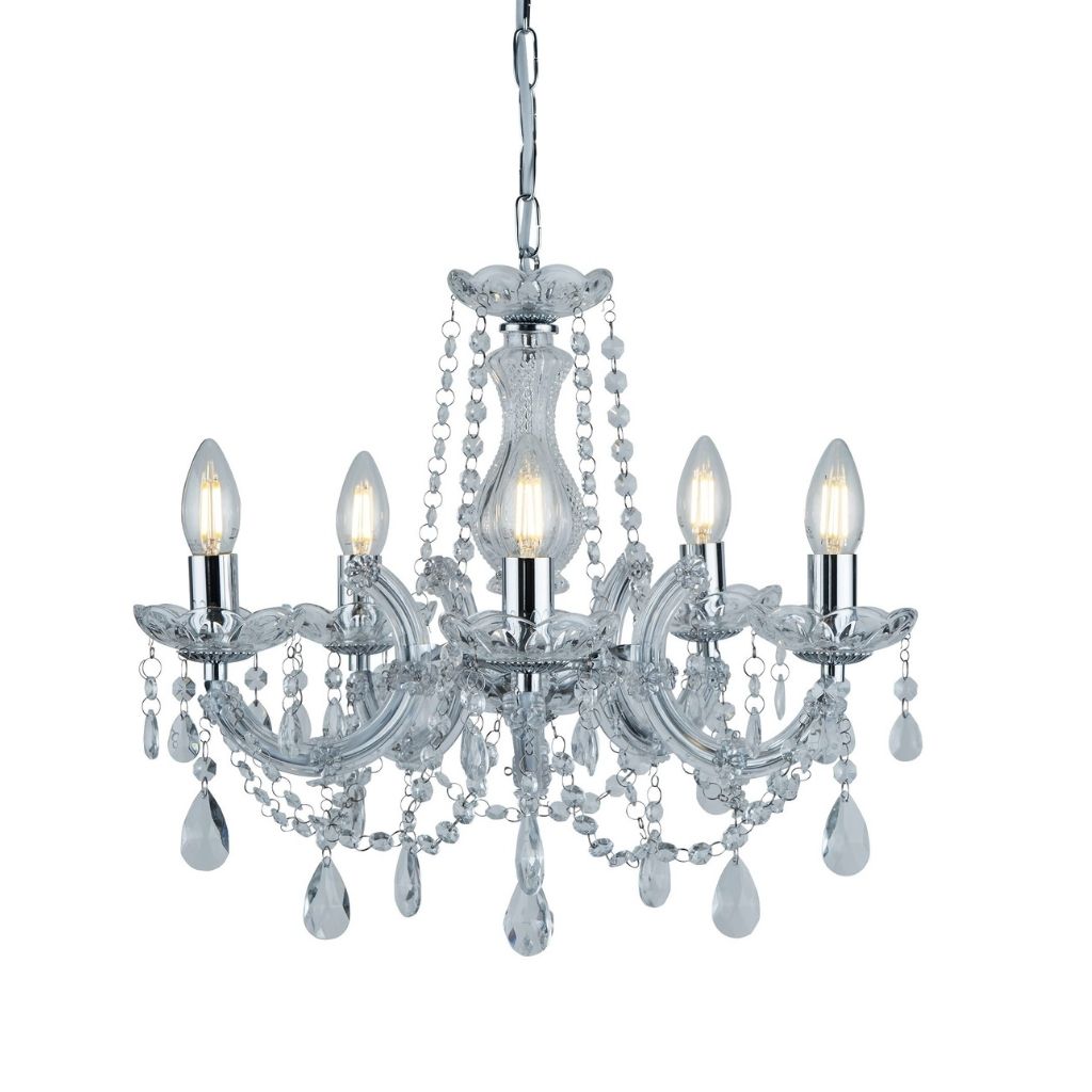 MARIE THERESE - 5x zdroj, závěsné svítidlo, chrom, čirý křišťál sklo