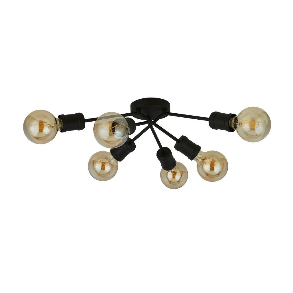 Searchlight stropní svítidlo barva písková černá, povrchová úprava barvení, použitý materiál je měkká ocel. Rozměry v cm: celková výška: 15, výška: 15, šířka: 52, délka: 52, projekce: 0. Světelný zdroj objímka E27, potřeba žárovek 6, světelný zdroj není v balení, doporučený typ žárovky od výrobce je klasická baňka na max. 60W.