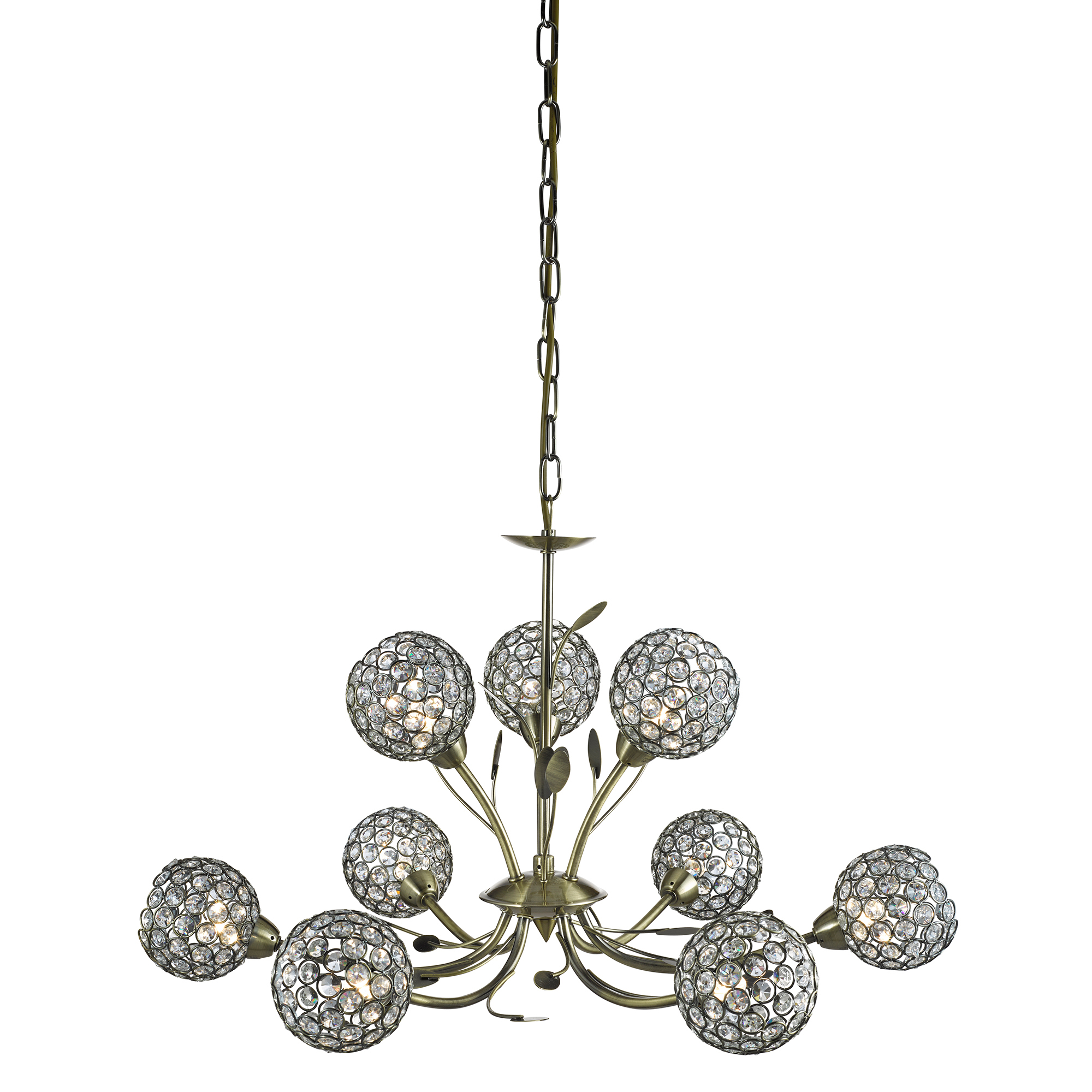 BELLIS II - 9x zdroj, závěsné svítidlo, antická mosaz, čiré sklo - dekorativní stínidlo