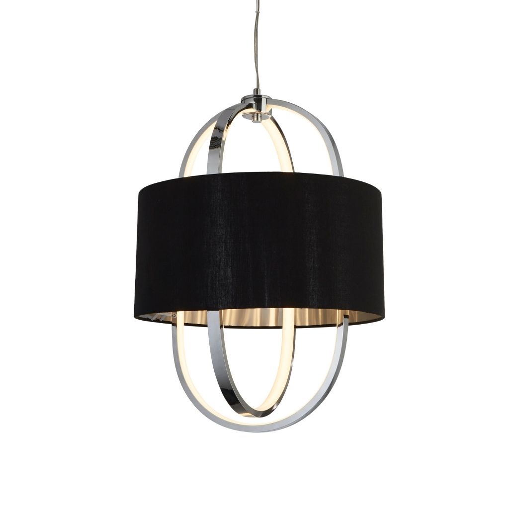 Searchlight závěsné svítidlo barva chrom, černá a bílá, povrchová úprava pokovení, použitý materiál je měkká ocel, textil a plast. Rozměry v cm: celková výška: 130, výška: 54, šířka: 38, délka: 38, projekce: 0. Světelný zdroj LED: Ano - integrovaný zdroj.