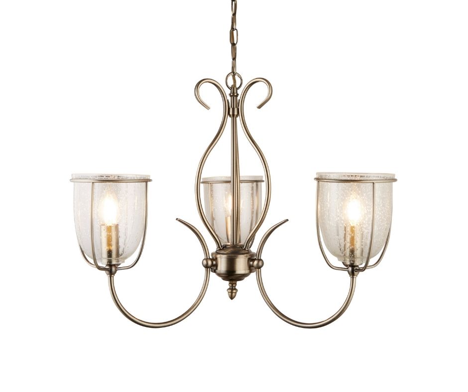 SILHOUETTE 3x zdroj, závěsné svítidlo, antická mosaz a skla s malými bublinkami
