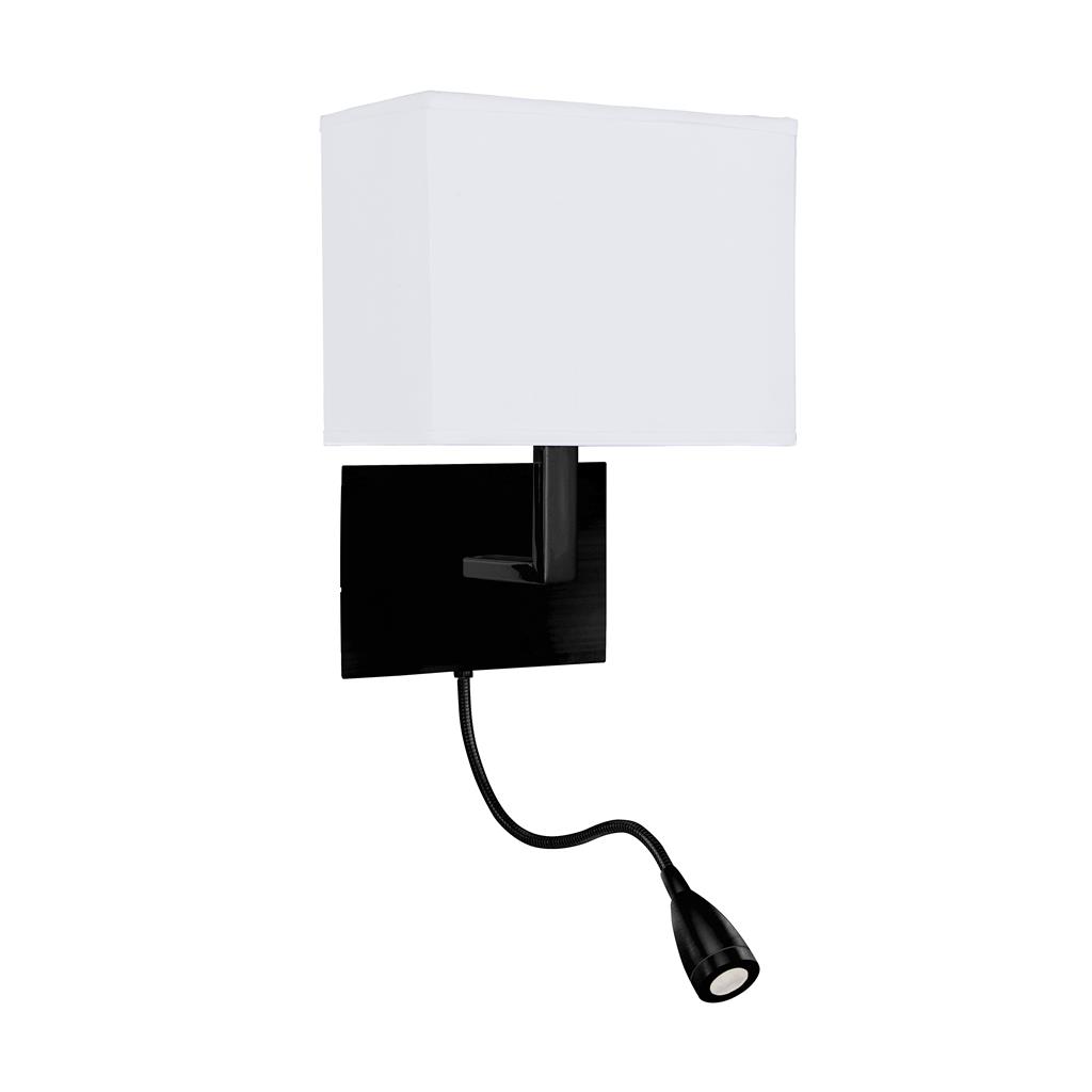 Searchlight nástěnné svítidlo barva černá, povrchová úprava matný práškový lak, použitý materiál je textil a měkká ocel. Rozměry v cm: celková výška: 26, výška: 26, šířka: 20, délka: 0, projekce: 26. Světelný zdroj objímka E27, potřeba žárovek 1, světelný zdroj není v balení, doporučený typ žárovky od výrobce je klasická baňka na max. 60W.