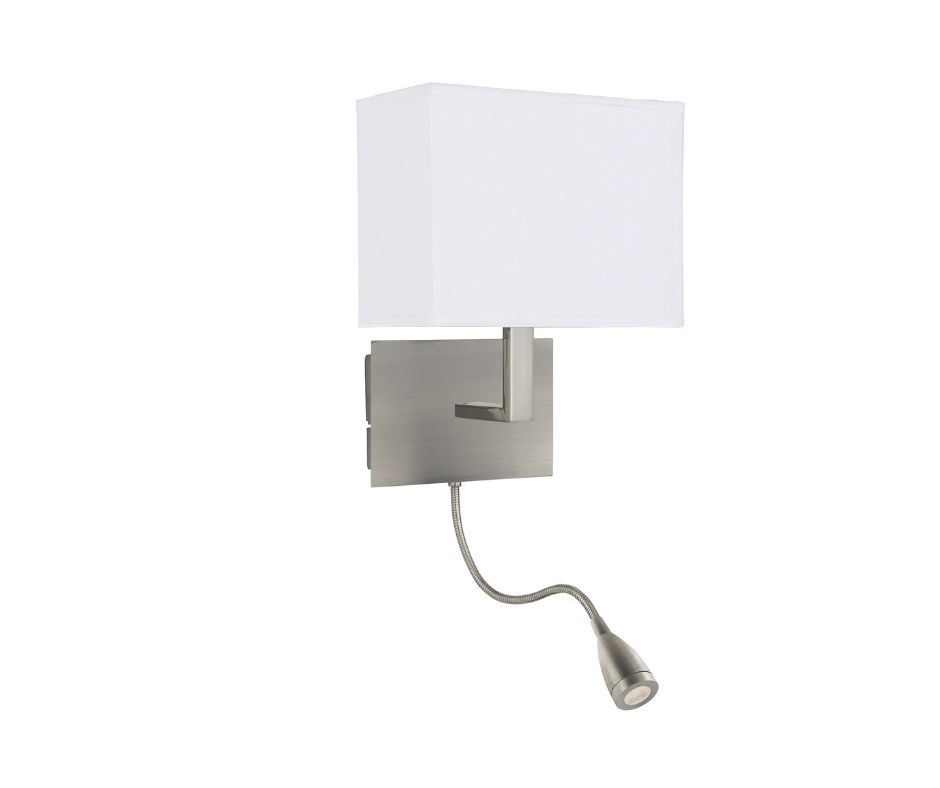 WALL LIGHT nastavovací - 2x zdroj, přisazené na stěnu, LED flexibilní rameno, matované stříbro, bílé stínidlo