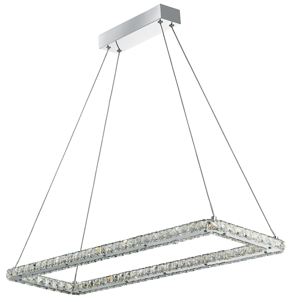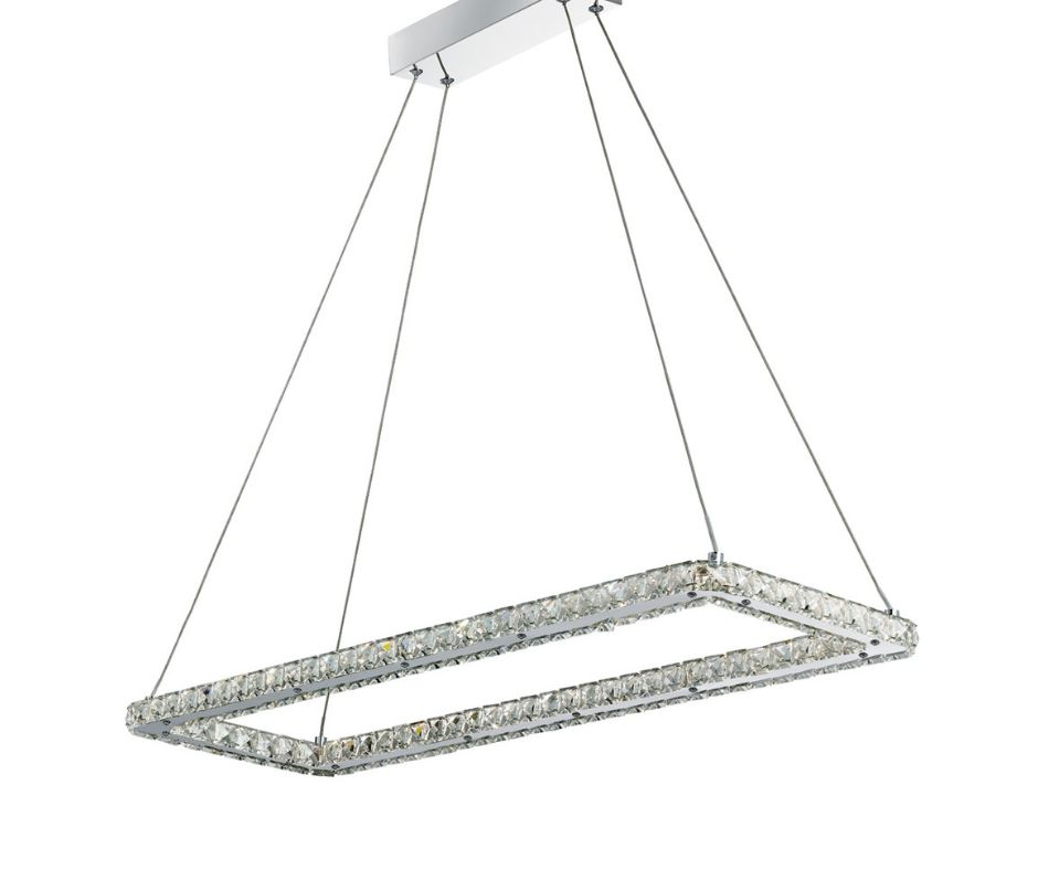 CLOVER - LED závěsné svítidlo obdélník, chrom, čirý křišťál sklo