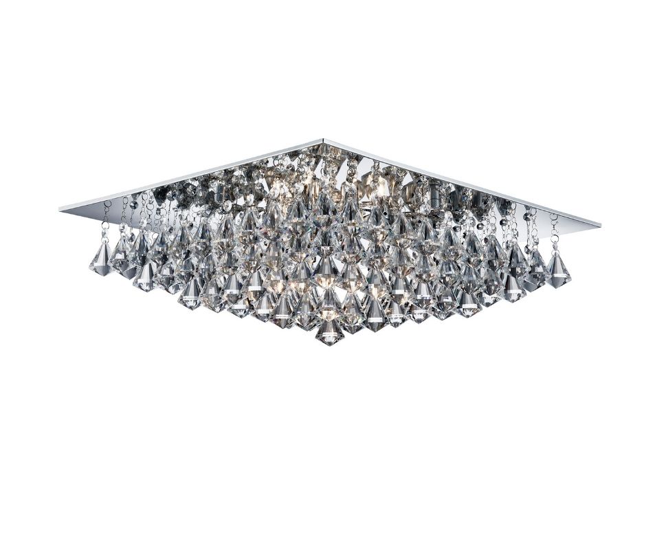 HANNA - 8x zdroj, obdélníkové přisazené svítidlo na strop, chrom, čiré křišťálové ověsy ve tvaru pyramidek