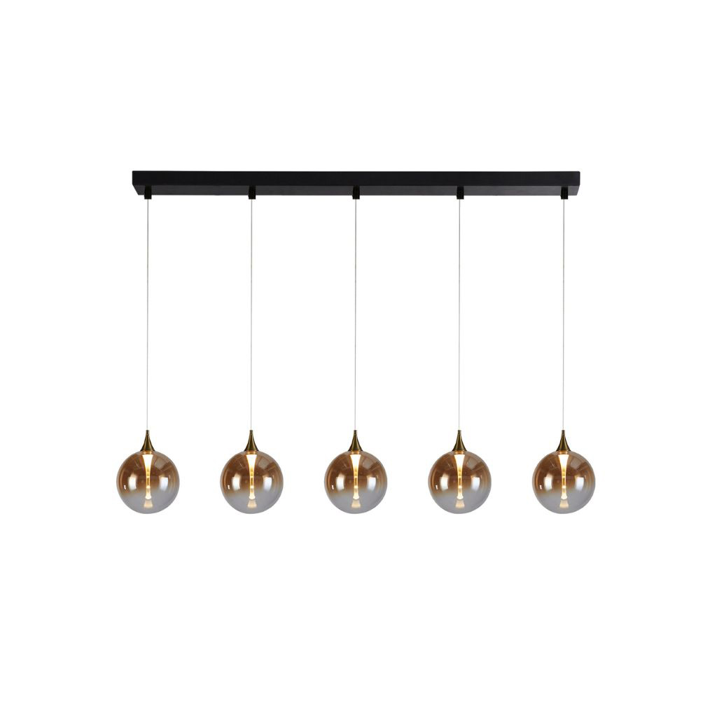 Searchlight závěsné svítidlo barva matná mosaz a černá, povrchová úprava barvení, použitý materiál je měkká ocel a sklo. Rozměry v cm: celková výška: 150, výška: 27, šířka: 16, délka: 120, projekce: 0. Světelný zdroj LED: Ano - integrovaný zdroj.