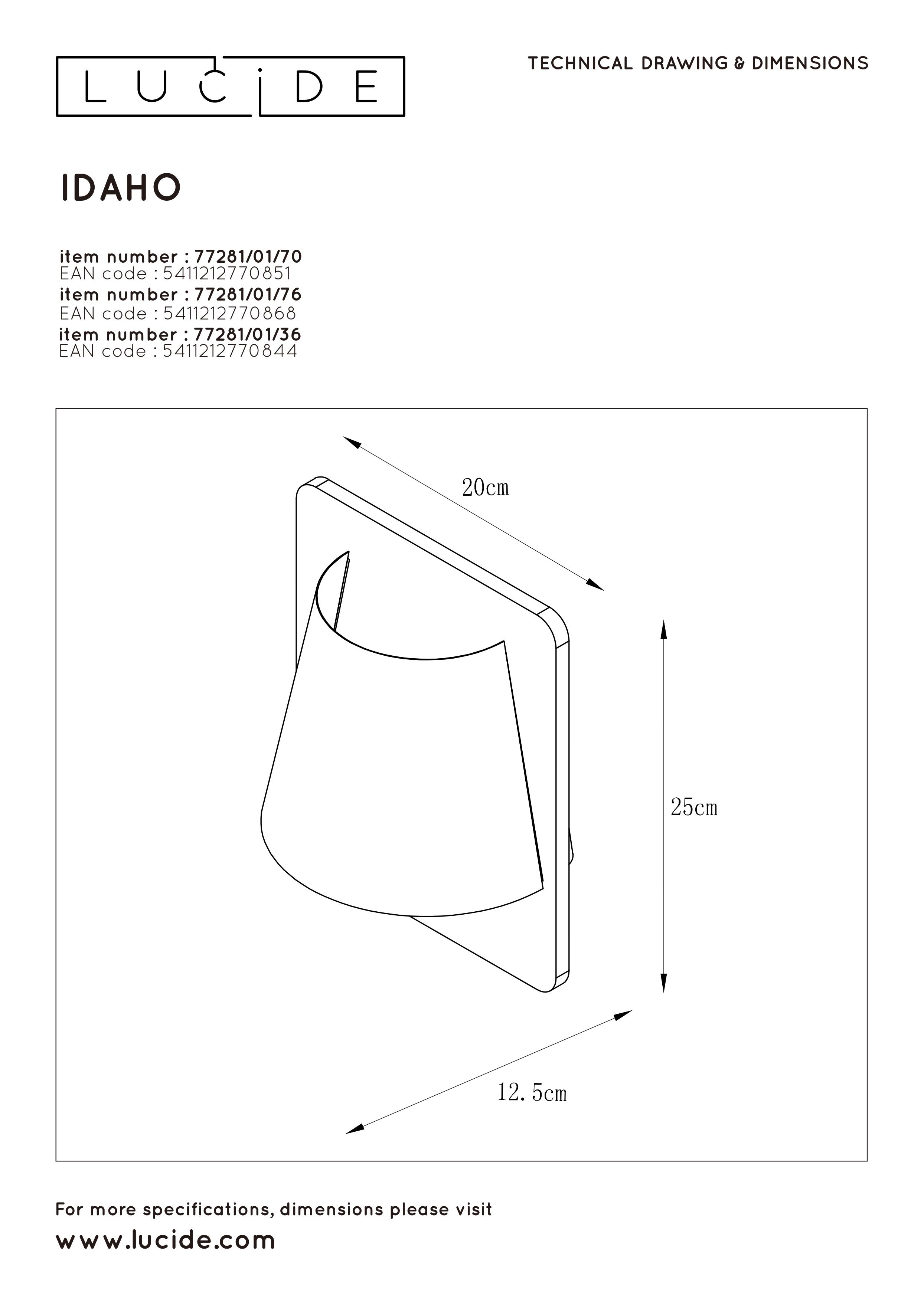 Je Idaho nástěnné nebo stropní svítidlo? Tento originální design oklame každého. Desku ze dřeva lze snadno připevnit ke stěně. Idaho můžete zapnout a vypnout pomocí vypínače na lampě. Světlo se rozptýlí všude kolem a nechá váš obývací pokoj, ložnici nebo psací stůl v příjemné záři. Světlo na stěnu je kompatibilní s LED žárovkou. Idaho je k dispozici v různých barvách.