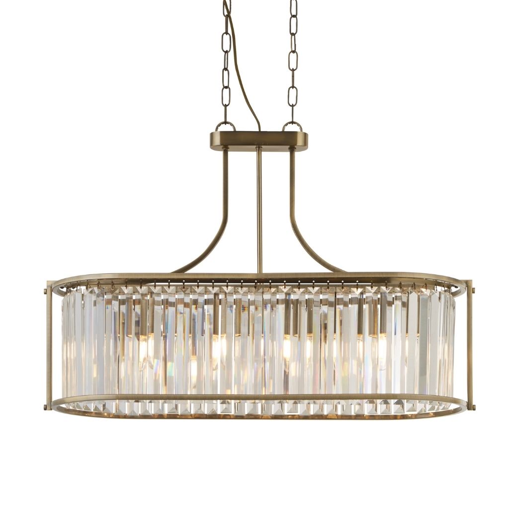 Searchlight závěsné svítidlo barva starožitná mosaz, povrchová úprava pokovení matované, použitý materiál je měkká ocel a sklo. Rozměry v cm: celková výška: 150, výška: 50, šířka: 30, délka: 78, projekce: 0. Světelný zdroj objímka E27, potřeba žárovek 5, světelný zdroj není v balení, doporučený typ žárovky od výrobce je klasická baňka na max. 60W.