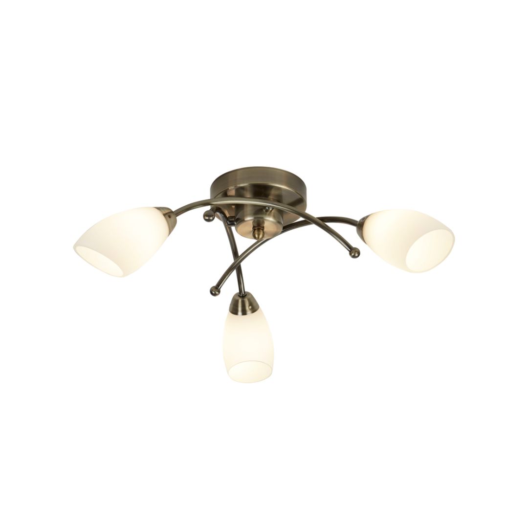 OPERA 3x zdroj, antická mosaz, přisazené svítidlo na strop a opálové sklo