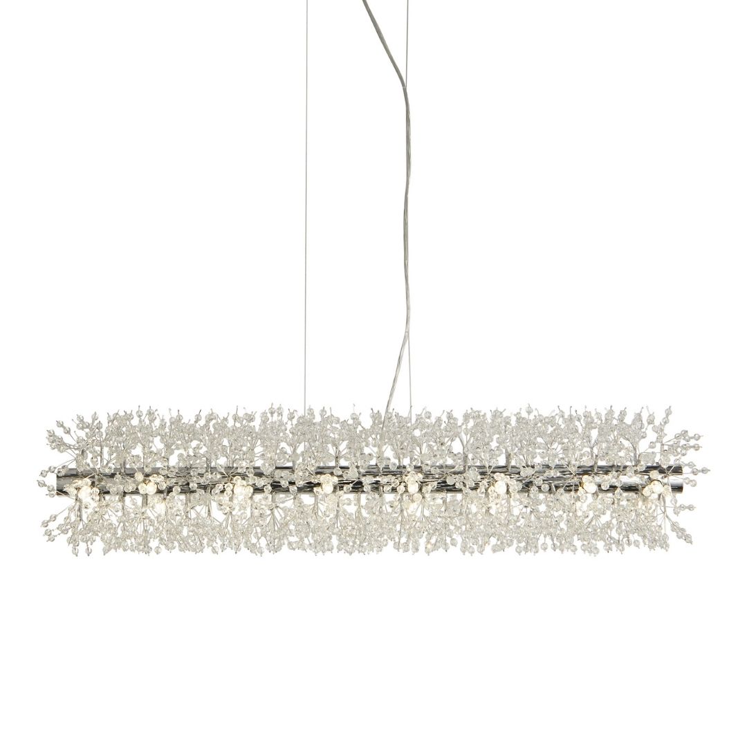 Searchlight závěsné svítidlo barva chrom a čirá, povrchová úprava pokovení lesk, použitý materiál je měkká ocel a sklo. Rozměry v cm: celková výška: 150, výška: 22, šířka: 100, délka: 22, projekce: 0. Světelný zdroj objímka G9, potřeba žárovek 16, světelný zdroj není v balení, doporučený typ žárovky od výrobce je G9 na max. 33W.
