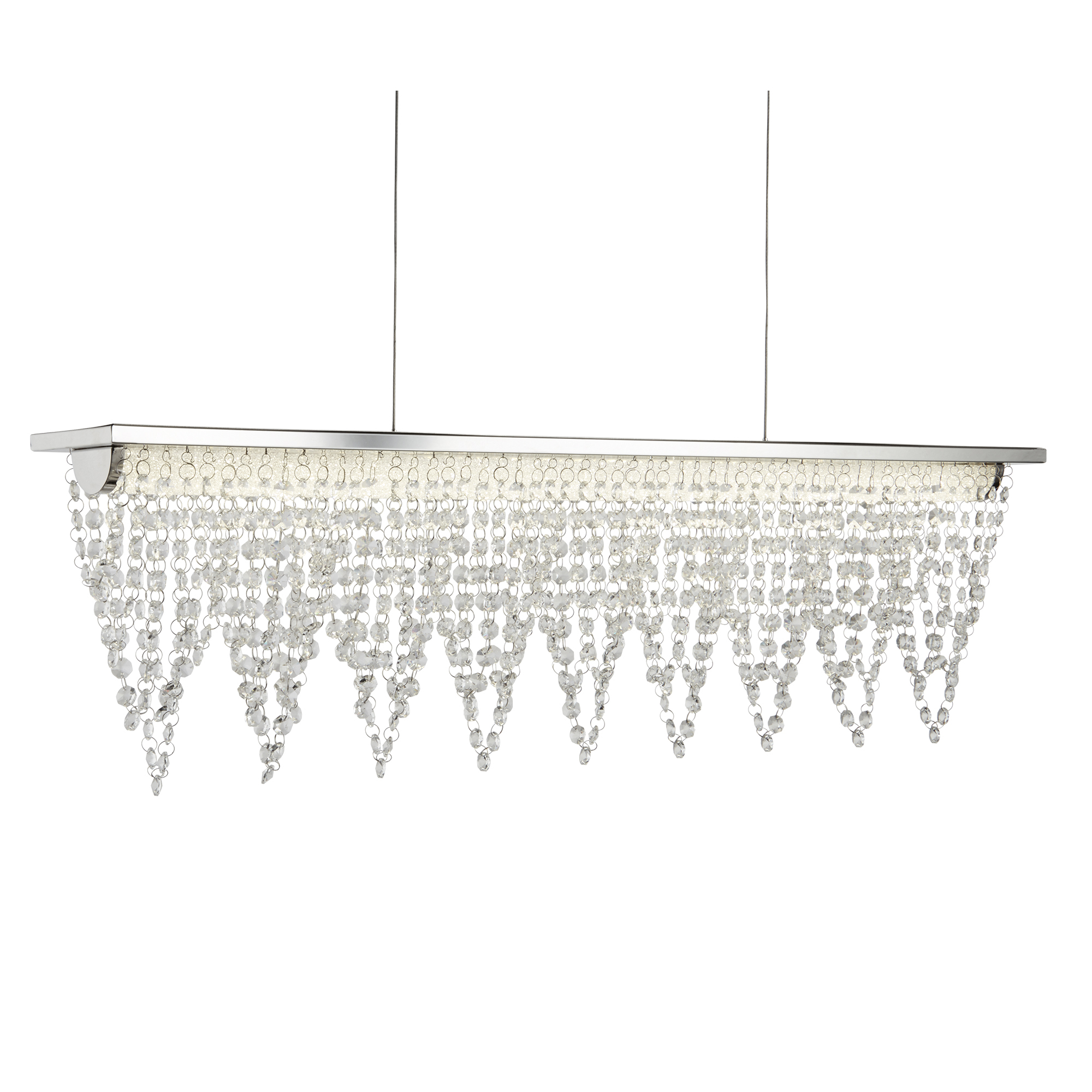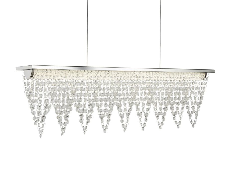DRAPE LED závěsné svítidlo nad jídelní stůl (65cm délka), chrom, čiré křišťálové pecičky