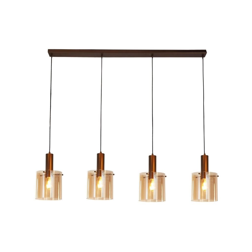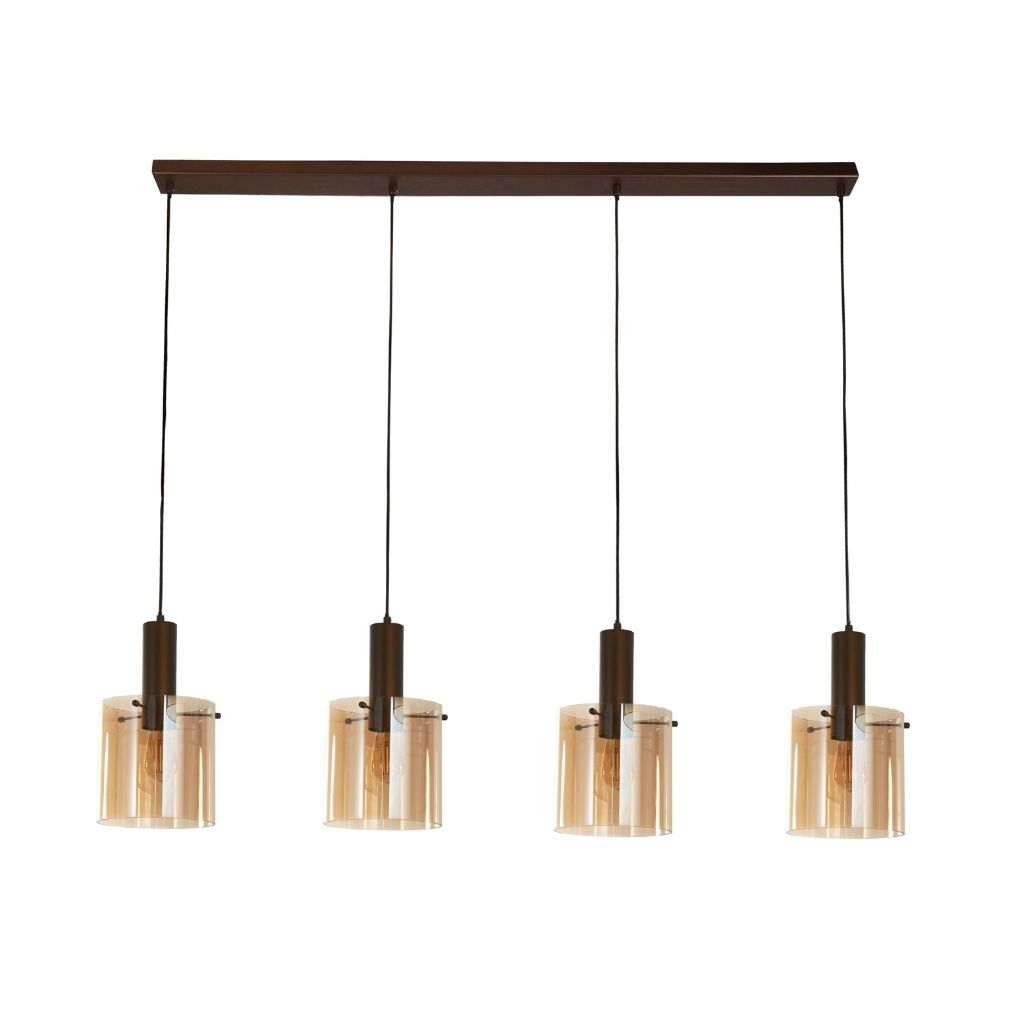 Searchlight závěsné svítidlo barva kávová, povrchová úprava matný práškový hedvábné, použitý materiál je měkká ocel a sklo. Rozměry v cm: celková výška: 150, výška: 35, šířka: 22, délka: 142, projekce: 0. Světelný zdroj objímka E27, potřeba žárovek 4, světelný zdroj není v balení, doporučený typ žárovky od výrobce je klasická baňka na max. 60W.