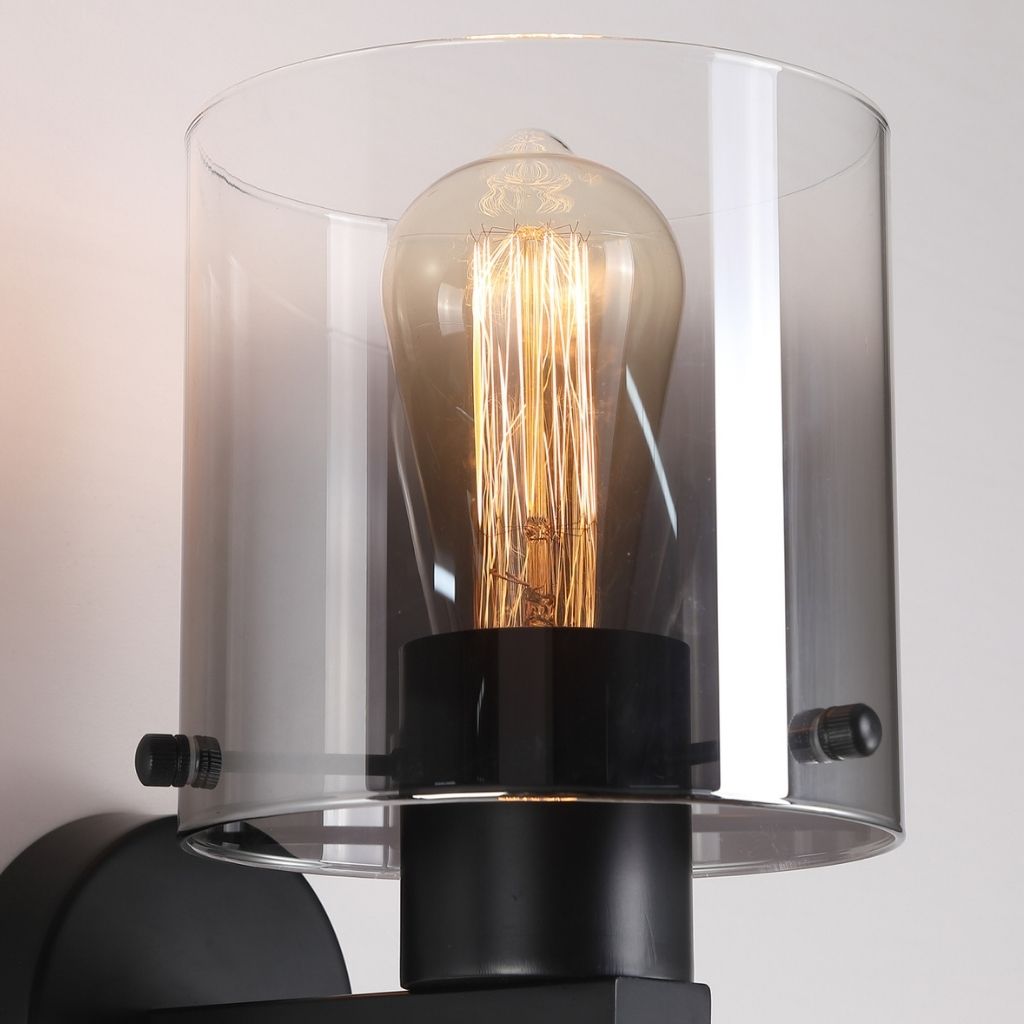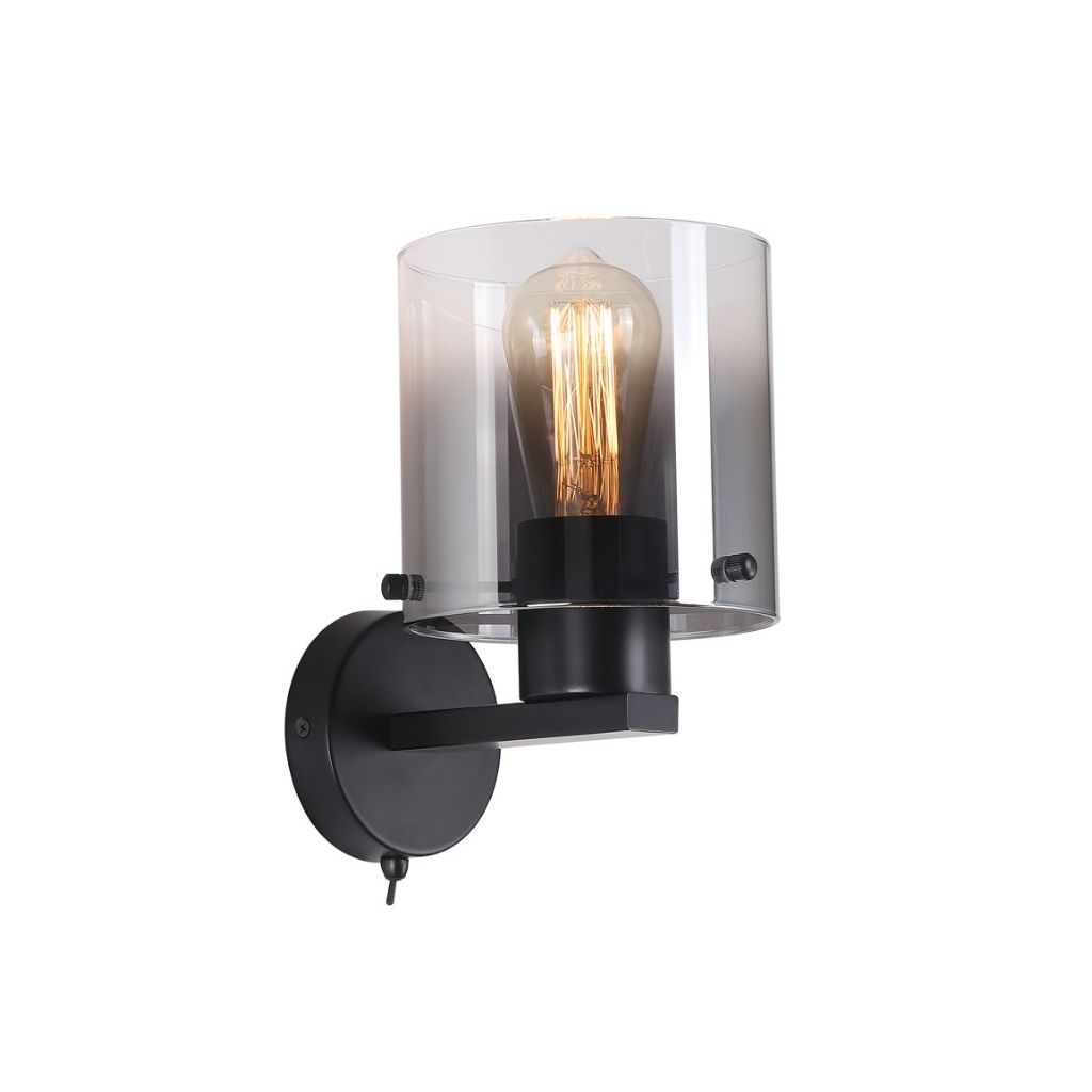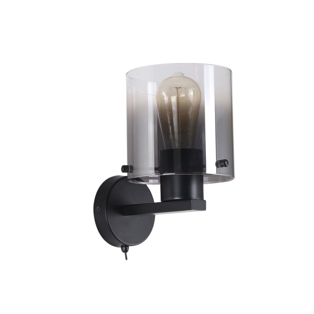 Searchlight nástěnné svítidlo barva černá a kouřová, povrchová úprava barvení matné, použitý materiál je kov a sklo. Rozměry v cm: celková výška: 24, výška: 24, šířka: 15, délka: 0, projekce: 20. Světelný zdroj objímka E27, potřeba žárovek 1, světelný zdroj není v balení, doporučený typ žárovky od výrobce je klasická baňka na max. 60W.