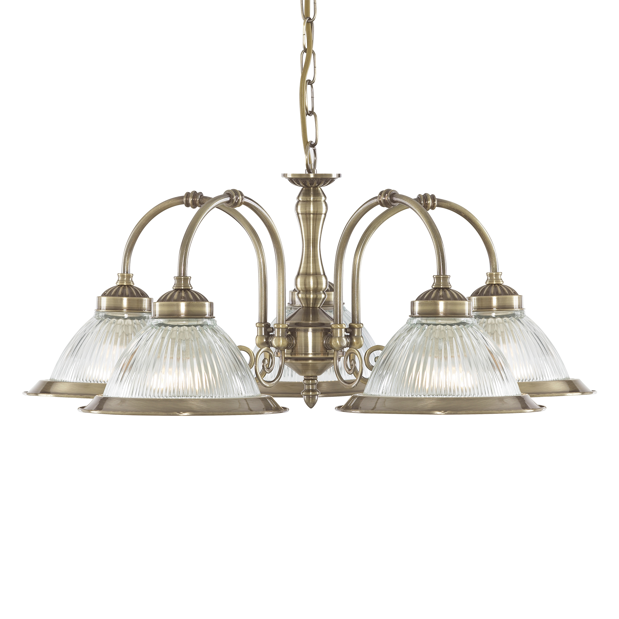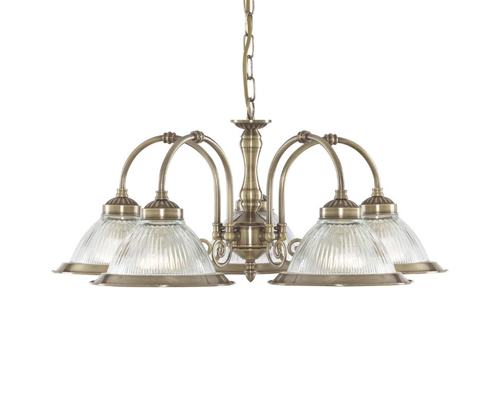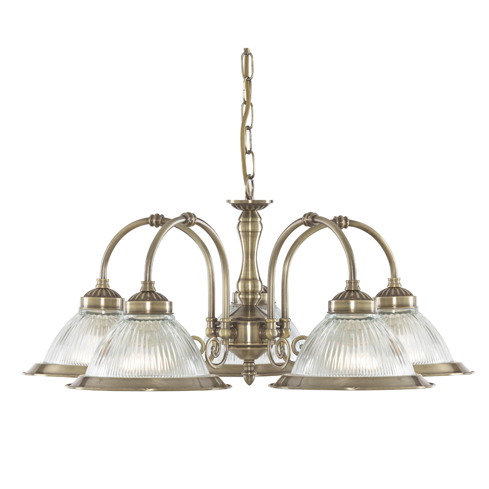 AMERICAN DINER - 5x zdroj, závěsné svítidlo, antická mosaz, čiré sklo