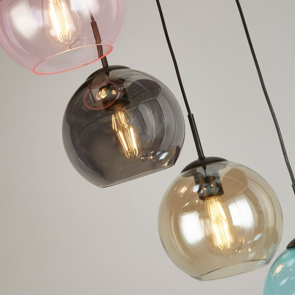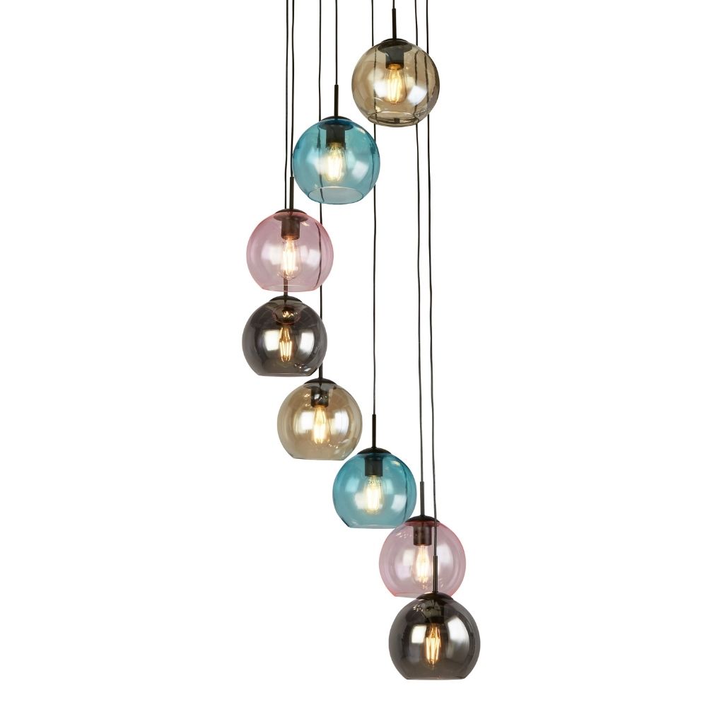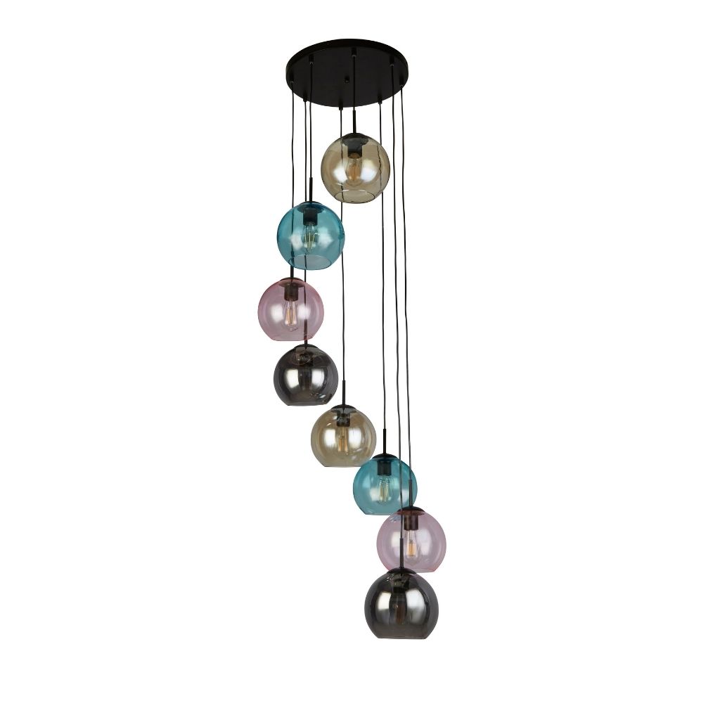 Searchlight závěsné svítidlo barva černá, povrchová úprava matný práškový lak, použitý materiál je měkká ocel a sklo. Rozměry v cm: celková výška: 200, výška: 200, šířka: 54, délka: 54, projekce: 0. Světelný zdroj objímka E27, potřeba žárovek 8, světelný zdroj není v balení, doporučený typ žárovky od výrobce je klasická baňka na max. 60W.