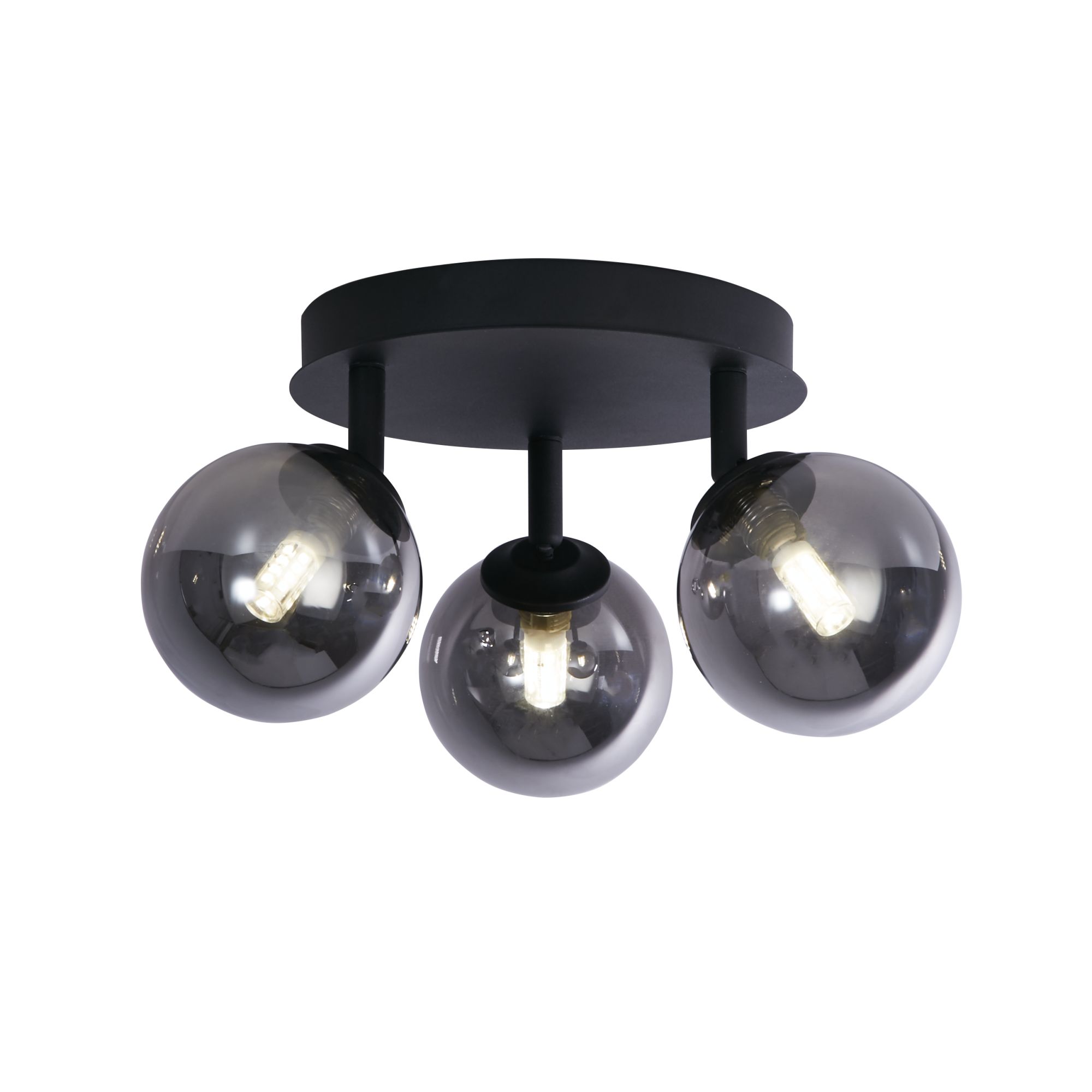 Searchlight bodovkové svítidlo barva černá, povrchová úprava matný práškový lak, použitý materiál je měkká ocel a sklo. Rozměry v cm: celková výška: 17,5, výška: 13,5, šířka: 34, délka: 34, projekce: 0. Světelný zdroj objímka G9, potřeba žárovek 3, světelný zdroj není v balení, doporučený typ žárovky od výrobce je G9 na max. 33W.