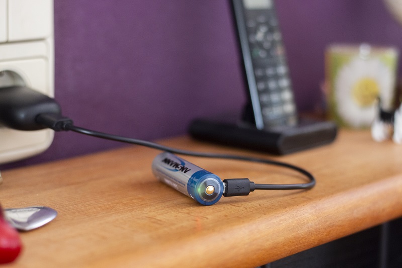Nabíjí se micro USB kabelem připojeným přímo do akumulátoru a není
