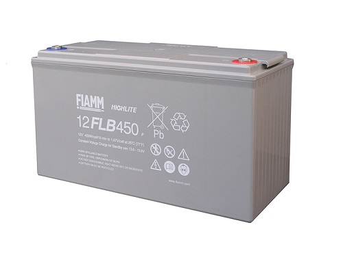 Bezúdržbový, ventilem řízený olověný akumulátor FIAMM FLB s životností 10-12 let dle standardů Eurobat.