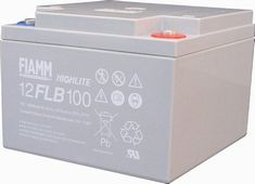 Bezúdržbový, ventilem řízený olověný akumulátor FIAMM FLB s životností 10-12 let dle standardů Eurobat.