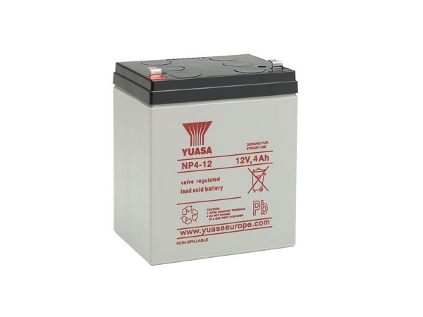 YUASA NP4-12 je olověný hermeticky uzavřený akumulátor s životností 3-5let.
