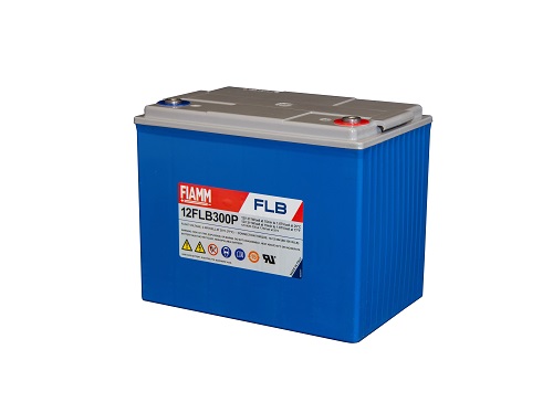 Bezúdržbový, ventilem řízený olověný akumulátor FIAMM FLB s životností 10-12 let dle standardů Eurobat.