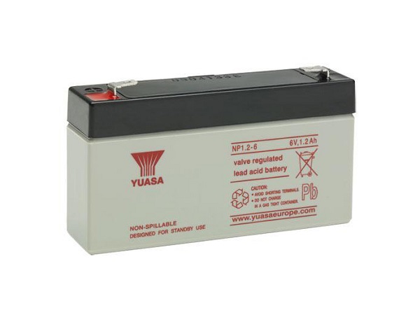 YUASA NP1,2-6 je olověný hermeticky uzavřený akumulátor s