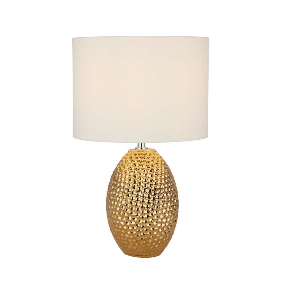 Searchlight stolní lampa barva zlatá,více světlá krémová,bílá, povrchová úprava pokovení, použitý materiál je neuvádí se. Rozměry v cm: celková výška: 45, výška: 31, šířka: 28, délka: 0, projekce: 0. Světelný zdroj objímka E27, potřeba žárovek 1, světelný zdroj není v balení, doporučený typ žárovky od výrobce je klasická baňka na max. 60W.